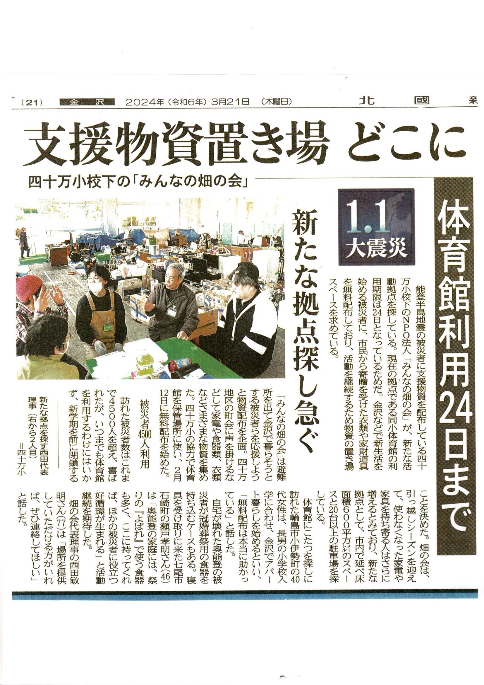 現在NPO法人みんなの畑の会 は能登の被災者12.7万人の方に向けて独自の支援活動を進め