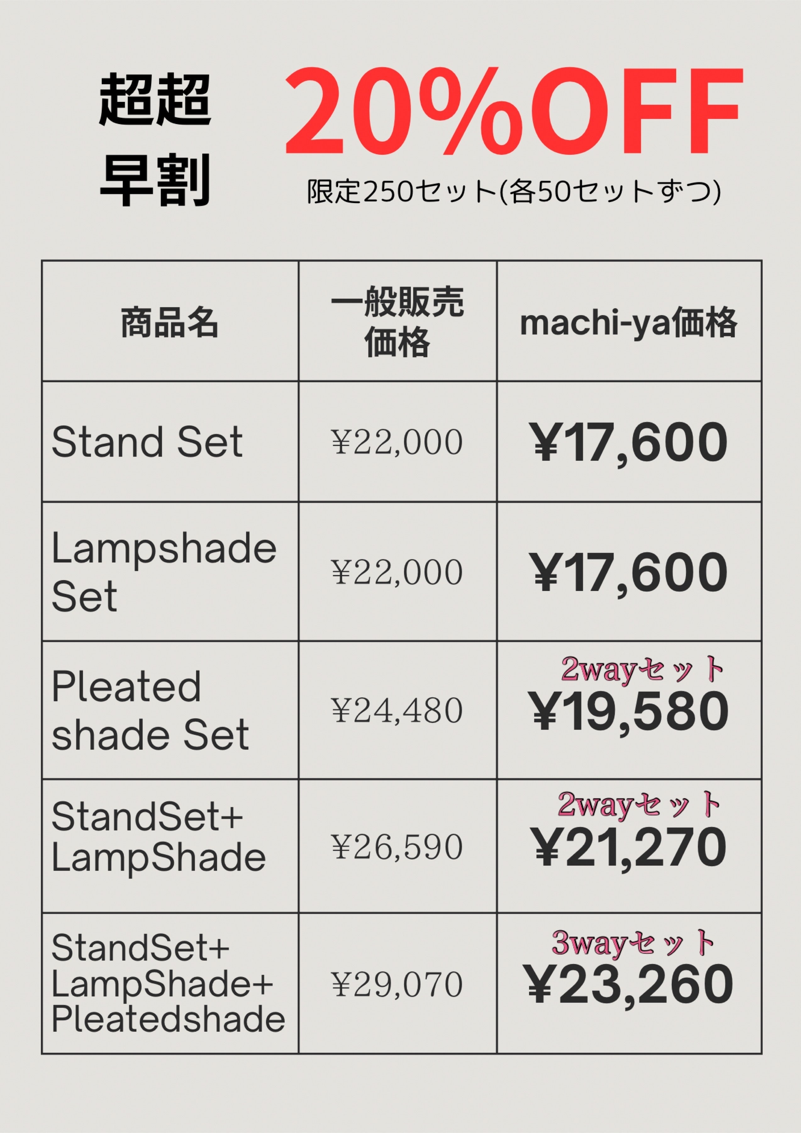 ※Stand Setのみ、LampShade Setのみのリターン商品は2way、3wayではご使用頂けません。単体のみでのご使用となります。2way、3wayでご使用する際はそれ用のセットのリターン商品をご用意しております。セットの詳細はリターン商品をご覧ください。※数には限りがございます。