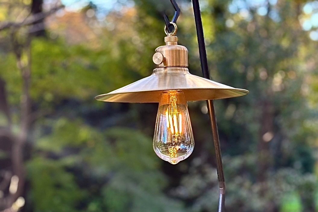 Stand Setの真鍮スタンドに装着されている中央のバッテリー部分の向きを変えて真鍮シェードへ装着する事で置き型タイプのStand Setから吊るすタイプのLampShade Setへ大変身します。テントの外に吊るしても中に吊るしてもよし。もちろん、室内でインテリア照明としてもおしゃれです。