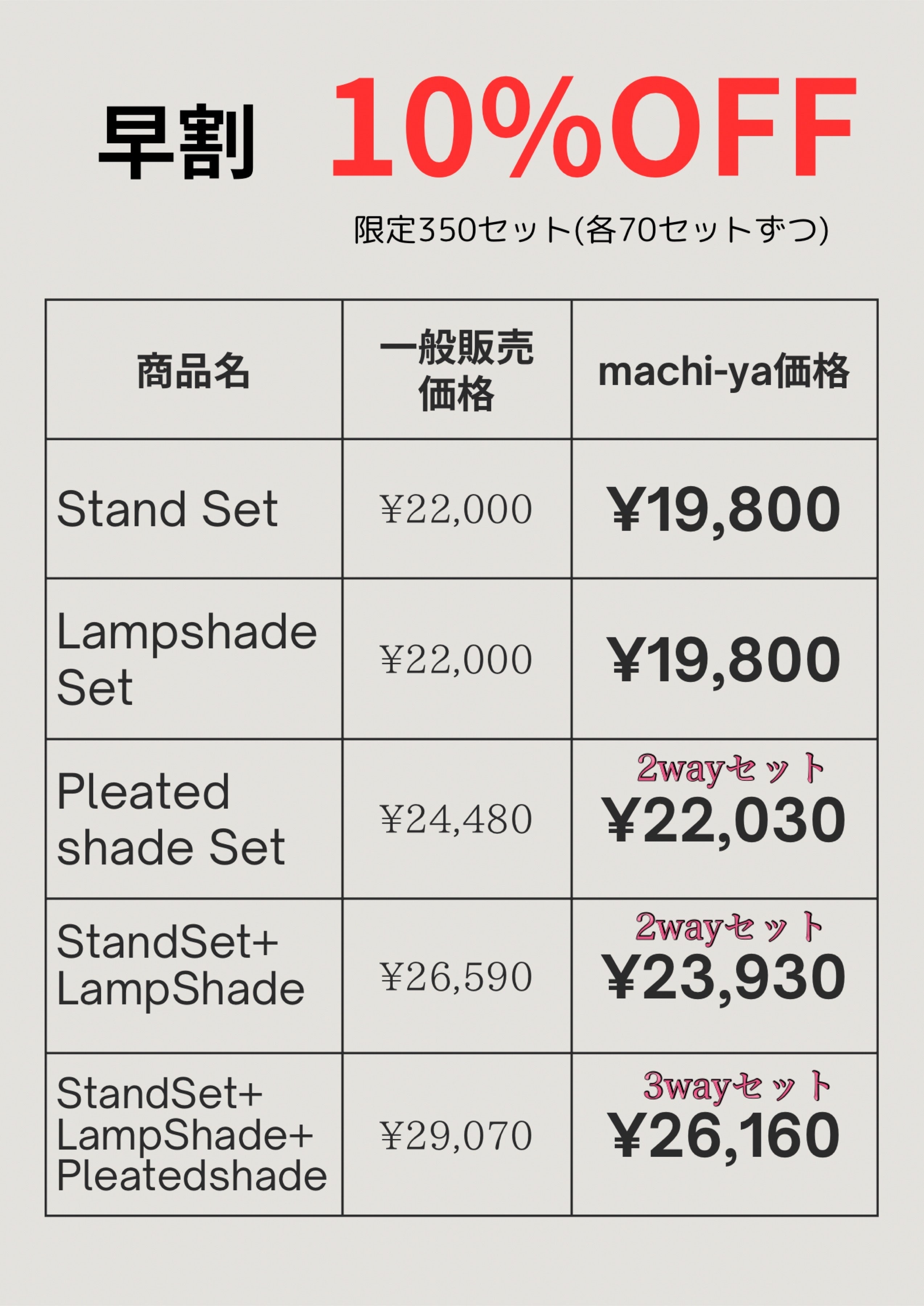 ※Stand Setのみ、LampShade Setのみのリターン商品は2way、3wayではご使用頂けません。単体のみでのご使用となります。2way、3wayでご使用する際はそれ用のセットのリターン商品をご用意しております。セットの詳細はリターン商品をご覧ください。※数には限りがございます。