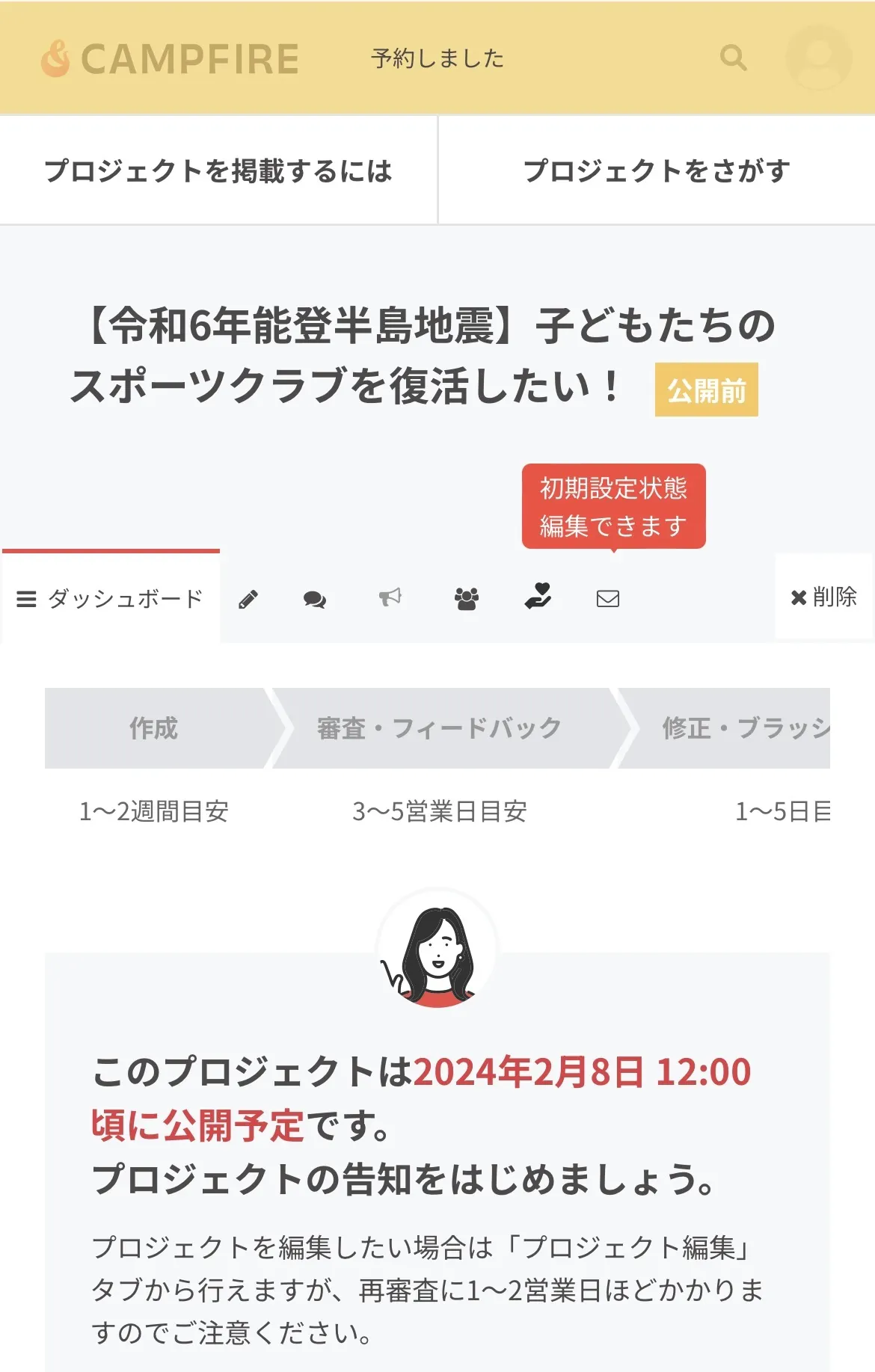 並行して今回のクラウドファンディングを進めておりました。準備•審査に時間を要し今日の日を迎えるに至りましたことをご報告•ご承知いただければ幸いです。