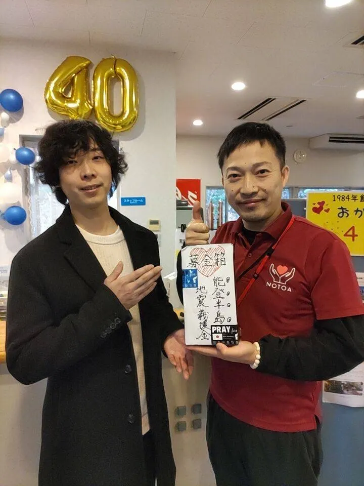 現在、神奈川県川崎市で飲食店に勤務され、今回の能登半島地震において、4店舗で能登への支援として義援金を集められたとのことです。