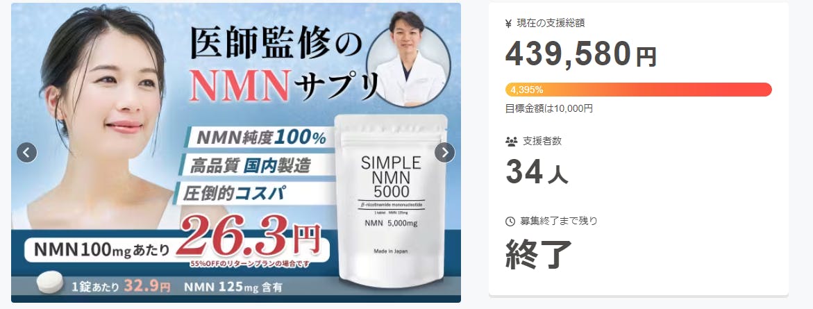 先年はCAMPFIREのSIMPLE NMN5000のプロジェクトを応援いただき、誠にありがとうございました。