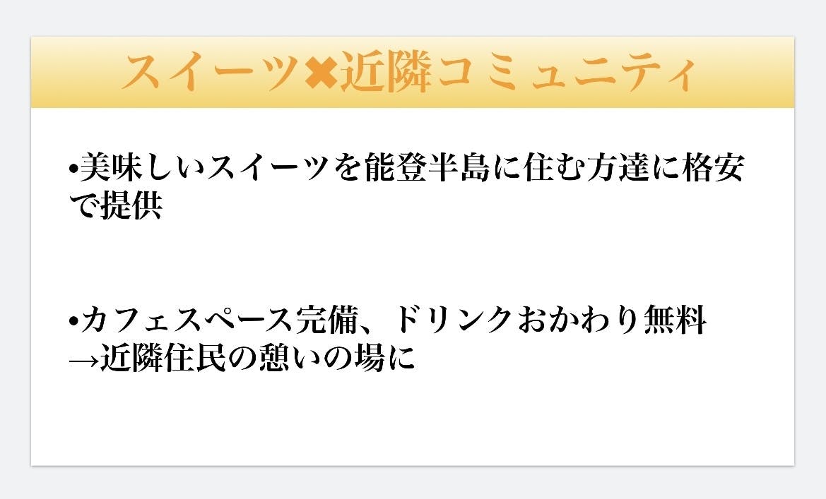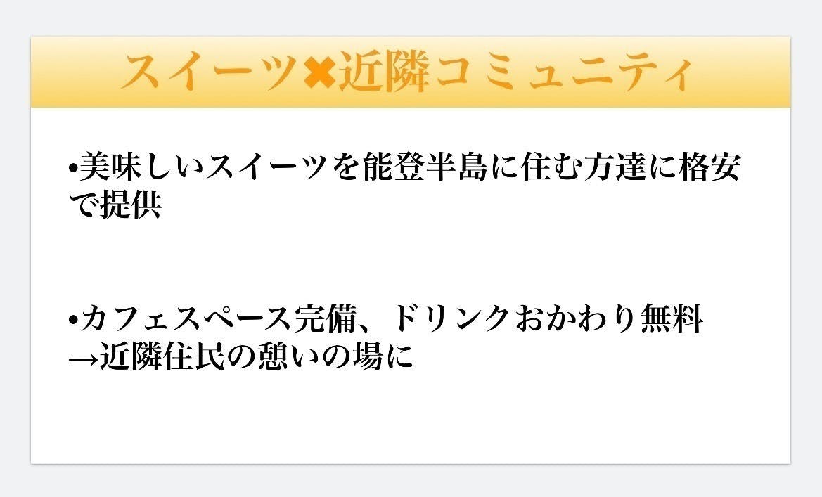 「能登半島にスイーツ店を作る」です。