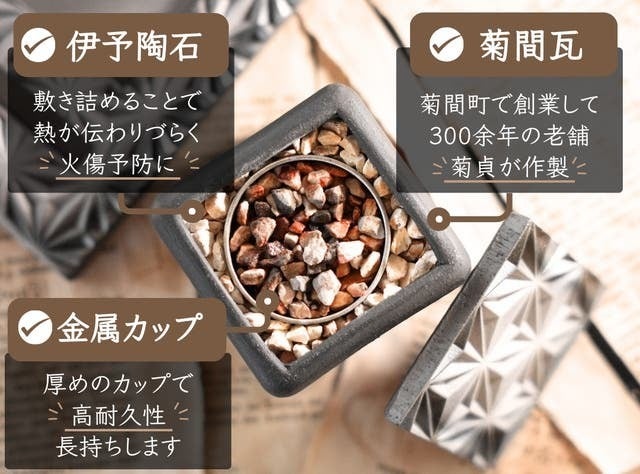 伊予陶石は多孔質素材のため、熱が伝わりづらいです