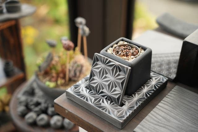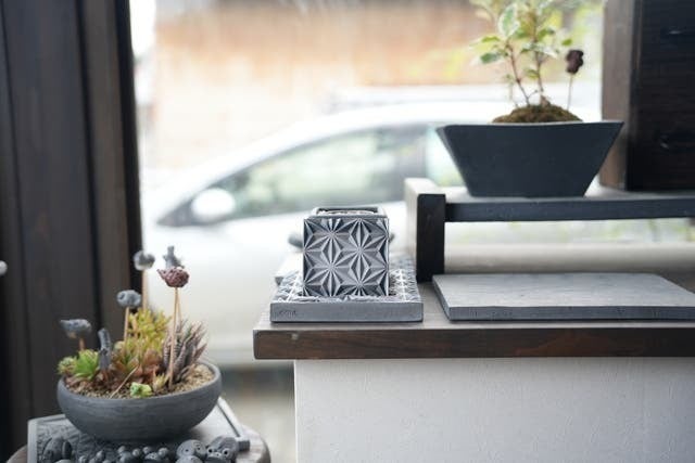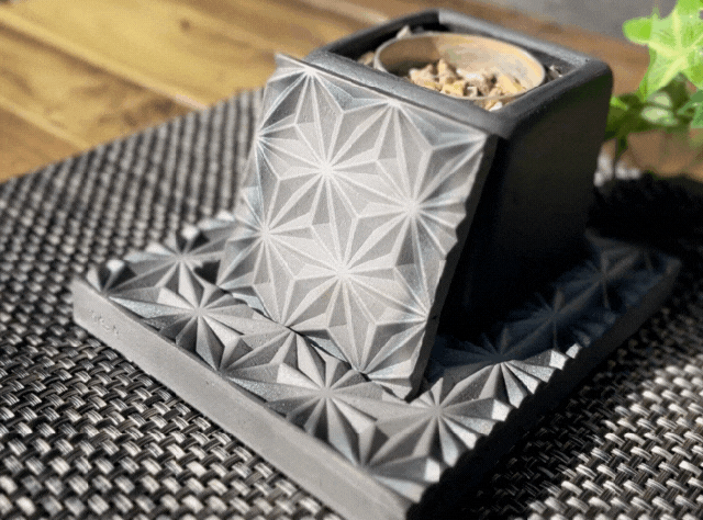 燈瓦で特にこだわったところは本体を置く土台の部分です。土台は移動しやすいサイズを確保しつつ、伝統的な麻の葉模様を楽しめる大きさにしました。また、幅広い世代に楽しんでもらえるように本体は黒(鍛黒色)、赤(陽土色)、緑(海松色)の3色を用意しました。全て同じねんどを使っていますが焼成温度、焼成回数及び雰囲気をコントロールすることでこれらの色を表現します。是非、炎と一緒に伝統工芸としても楽しんでいただけたらと思います。