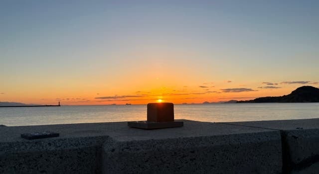 瀬戸内の夕日と燈瓦 @ 梅津駅