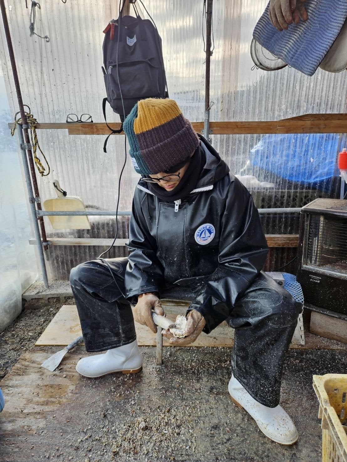 現在出荷に向けて、作業場の修繕や牡蠣の殻についた汚れを綺麗に掃除し準備しております。