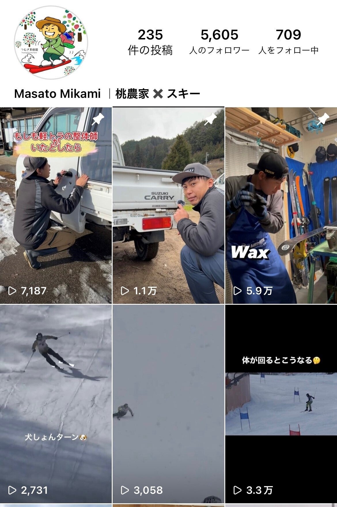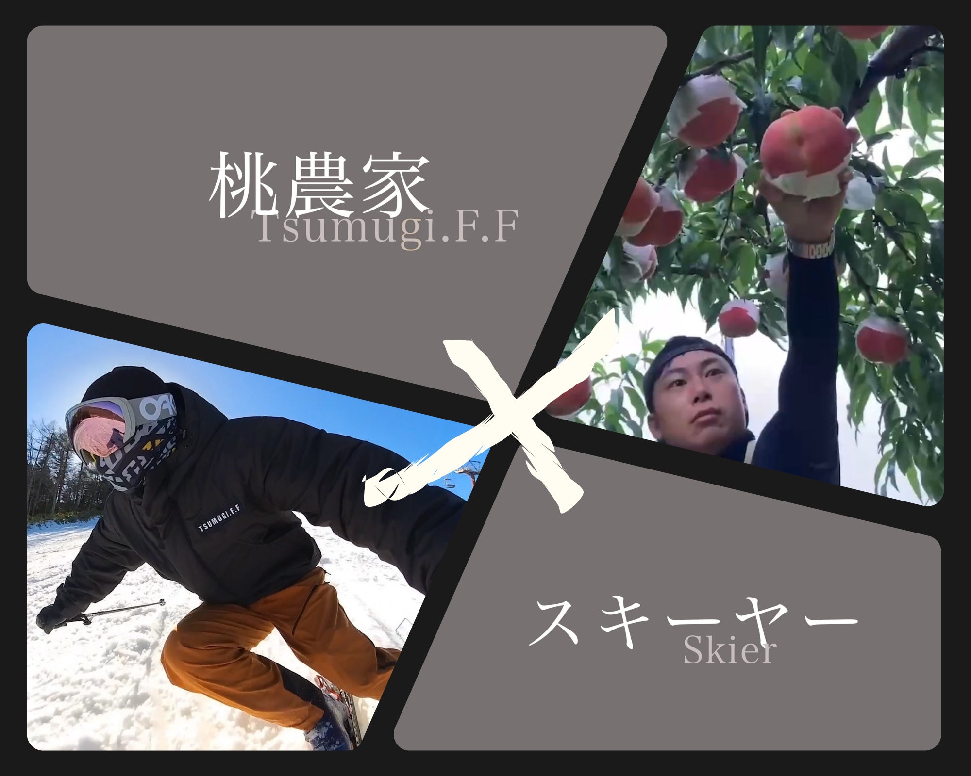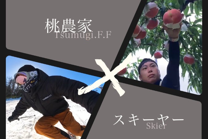 滑る桃農家。つむぎ果樹園で桃の生産や販売に従事しながらスキー活動を行う。