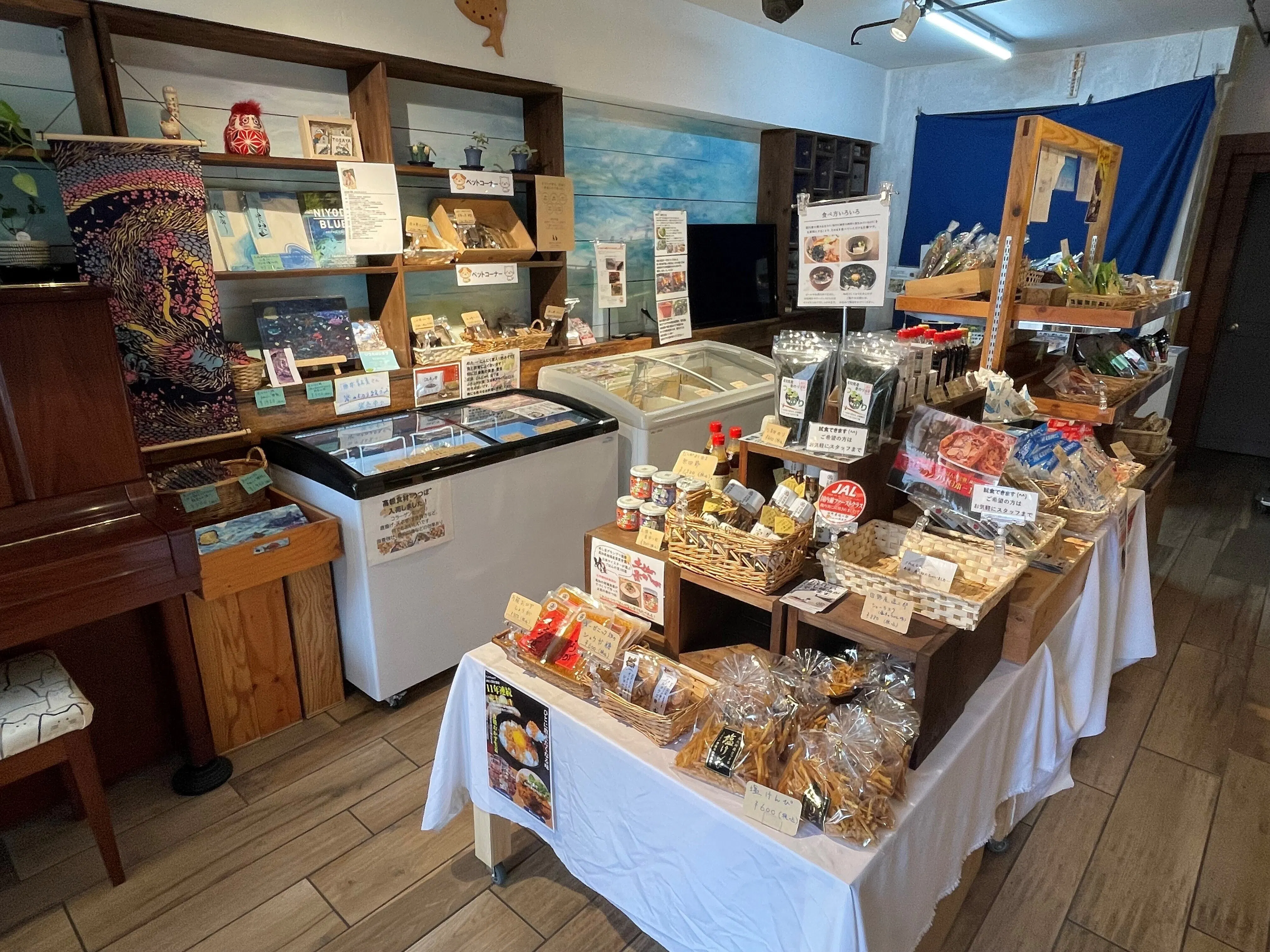 TOSAYAでは名古屋では珍しい商品を多数揃えており、ほとんどの商品が現地でメーカーや農家さんと直接やり取りをして送っていただいています。特にかつおの藁焼きたたき(冷凍)については、多数あるメーカーの中でも、藁でしか焼かない商品のみを扱っており、その香りの素晴らしさに感動したという声を多数いただいています。お店には妻が音楽家という事もあり、いつでもLIVEができる様にピアノを設置しました。月に1~2回程度、和歌女将主催のLIVEも開催しており、音楽を身近に感じていただけける環境作りにも力を入れております。