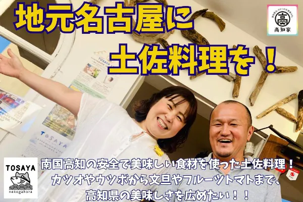 友人と高知県に旅に行った際に、高知県の美味しい食べ物やお酒、自然豊かな山間部、透明度の高い仁淀川、豊かな四万十川、海産物の豊富な海をとても強く感じる事ができました。高知県はゆる県民と呼ばれる程に人が暖かく、そんな県民性にも惹かれました。この土地の魅力を地元名古屋に伝えたいと強く思う様になり、そこから高知県の美味しい食品を扱うTOSAYAを始めました。ですが、高知県の食品は珍しい物も多く「調理方法や楽しみ方が分からない」との声を頂き、それなら現地で直接教えてもらった自分が調理し提供するのが一番!となり、調理と飲食のできるお店を作ろうと考えました。
