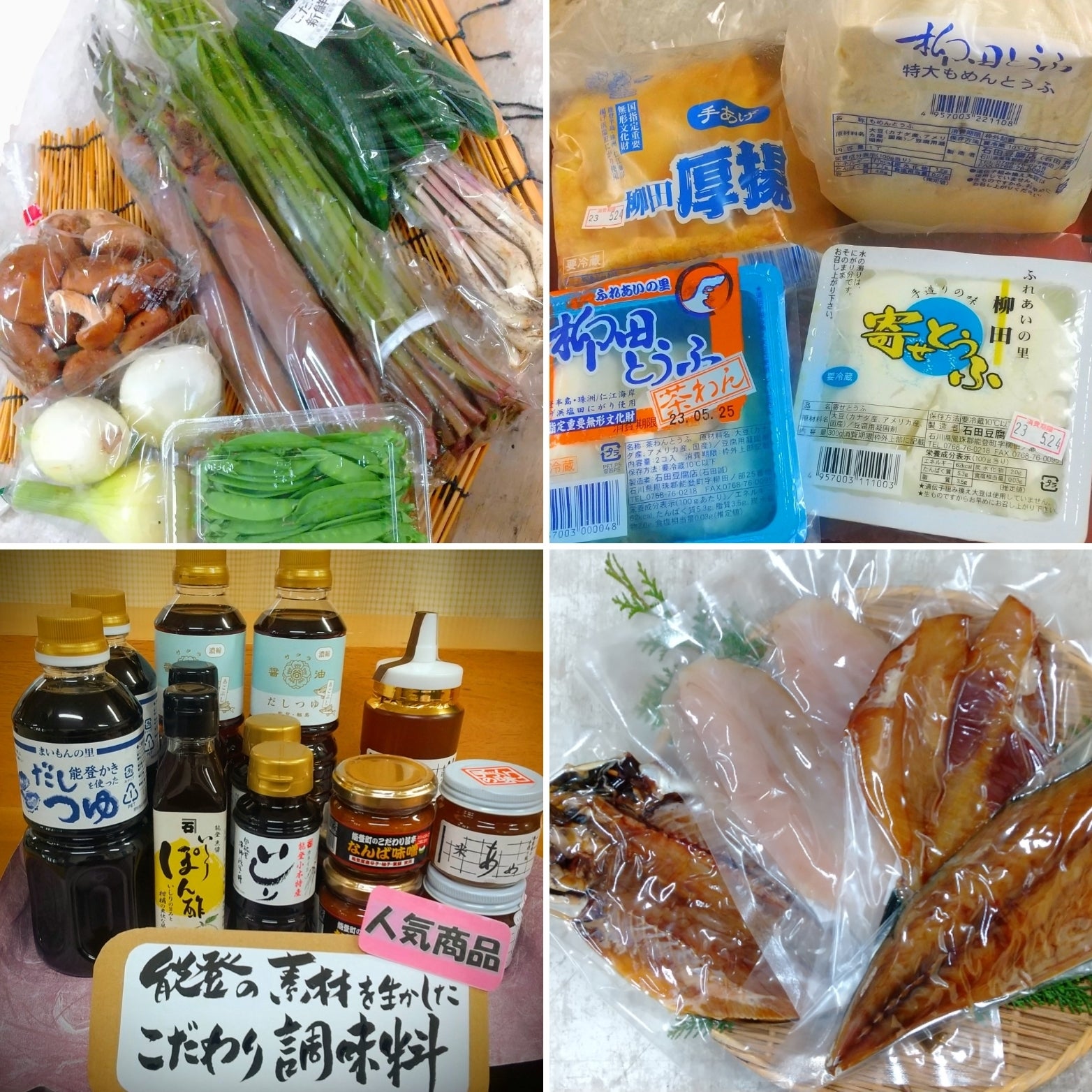 輪島朝市干物、田舎豆腐、こだわり調味料