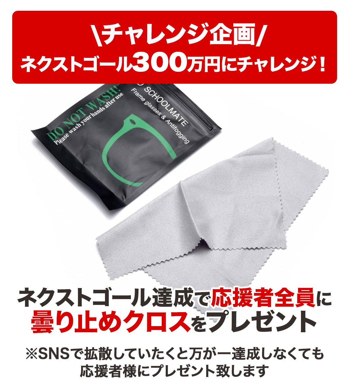 達成した暁には、ご支援いただいた皆様に曇り止めクロスをプレゼントいたします。