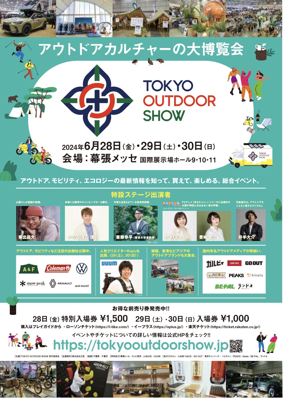 こんにちは。株式会社いちばんぼしの浅山佳映子です。6月28日〜30日で開催されるアウトドアイベント。東京アウトドアショー2024に、Sorgeが出展します。当日は、ゾルゲサングラスをはじめ、ソフトクーラーやボードゲームなど、イベント限定の特別価格でご案内する予定です。しかも、このイベントゲストがめちゃくちゃ豪華!6月29日は、よゐこ濱口 優さんのトークショーが開催されたり…6月30日は、NEWSのメンバーである小山慶一郎さんや、東出 昌大さんが、トークショーを行います。ぜひ、足を運んでいただき、一緒にイベントを楽しめると嬉しいです。Sorgeブース番号は「905」当日、お立ち寄りいただき、最新のサングラスの試着もしてくださいね!