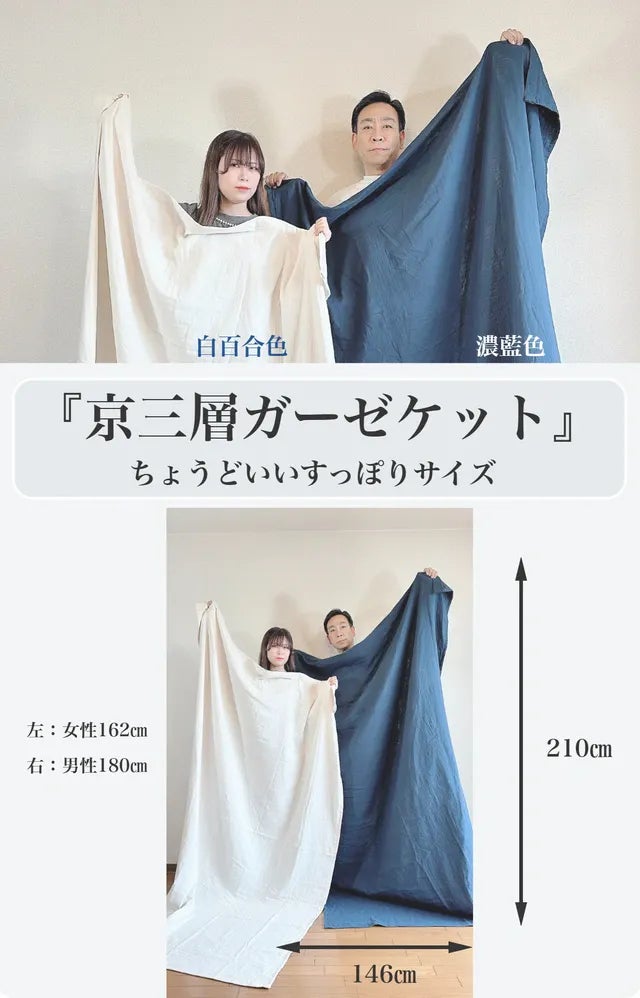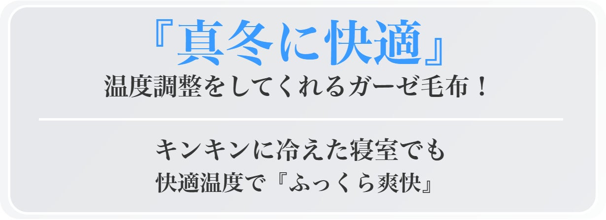 真冬の冷えた寝室で温かく全身を包む!天然『京三層』ガーゼ毛布をご堪能ください。