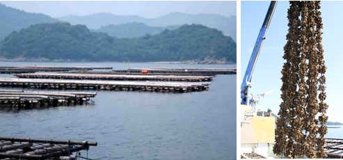 赤穂市の坂越湾は波があまりなく、天然記念物の生島樹林(常緑樹)と日本名水百選にも認定されている清流千種川が流れ込む為、良質の植物性プランクトンが豊富。