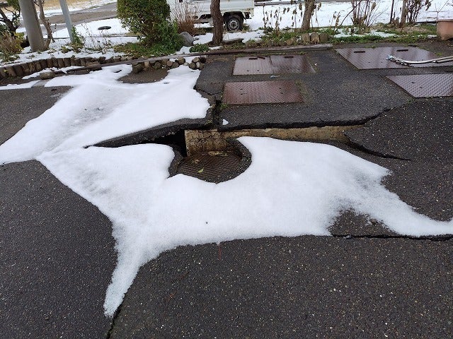 駐車場においては、地震による亀裂が生じ、駐車スペースの一部が利用できなくなっています。