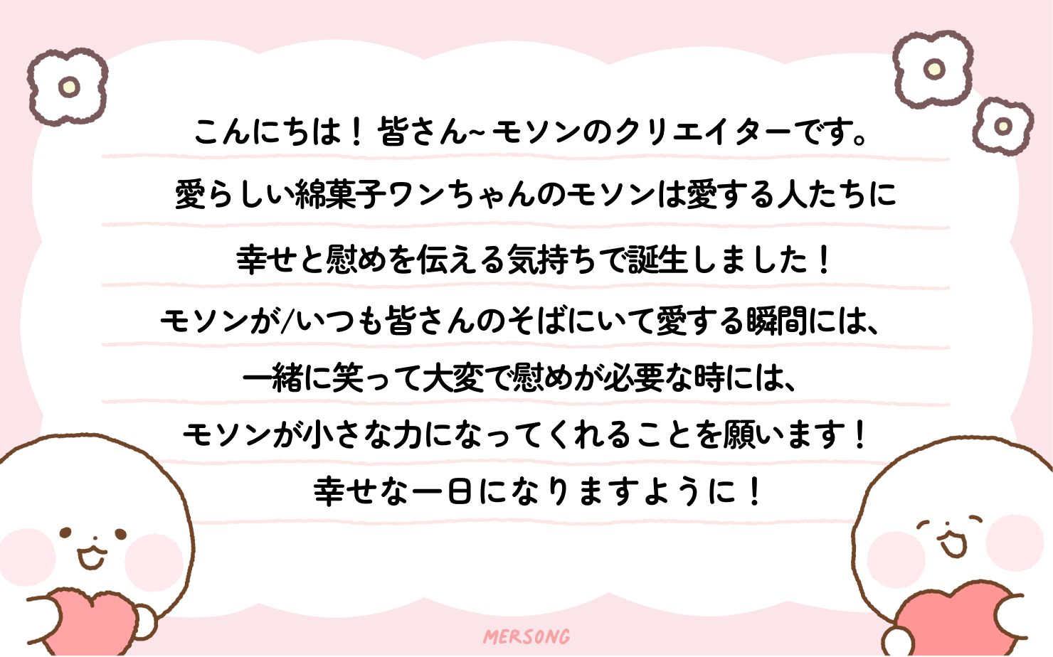 作家 「BOMTAIL」が描く愛らしい綿菓子ワンちゃんのキャラクター「モソン」