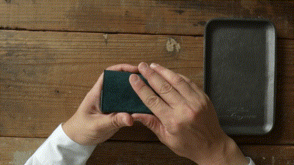 バケッタ製法とはイタリアに古くから続く手法で、ベジタブルタンニンでなめされた革を牛脚油(牛のすね骨や無締足を煮沸して採取したオイル)で加脂する製法です。加工に時間がかかることと、脂が浸透しにくという反面、使い込んだ時に独特の艶、オイルが抜けにくいという特徴があります。