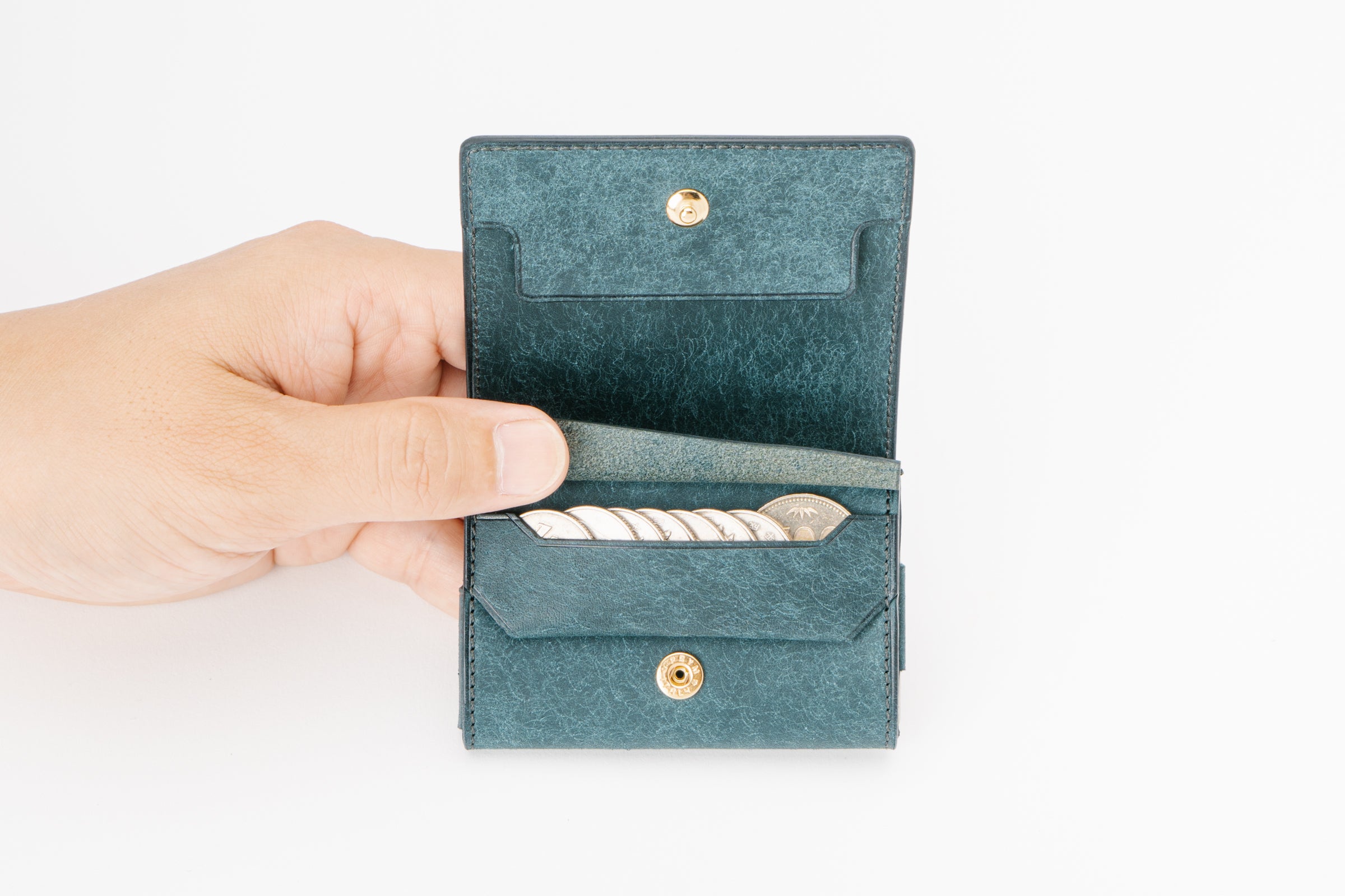 コインポケットは必要最小限の大きさにしました。最大12枚。小銭をもう少し多く持ちたい方にはこの財布は不向きかもしれません。小銭がもっと入れたい方は小銭入れが両マチ仕様になっている前作dritto 3をお勧め致します。