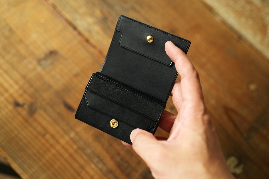昔から受け継がれた技術と新しいアイディアを融合させ最小クラスまで昇華させた小さく薄い三つ折り財布です!