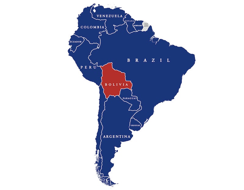 北はブラジル、南はアルゼンチン東南はパラグアイ、南西はチリ、北西はペルー。南アメリカ大陸の内陸部にある国です。