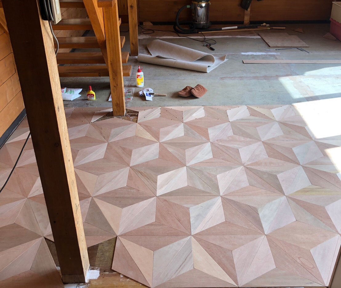 1階の床は、麻の葉文様に変更中!