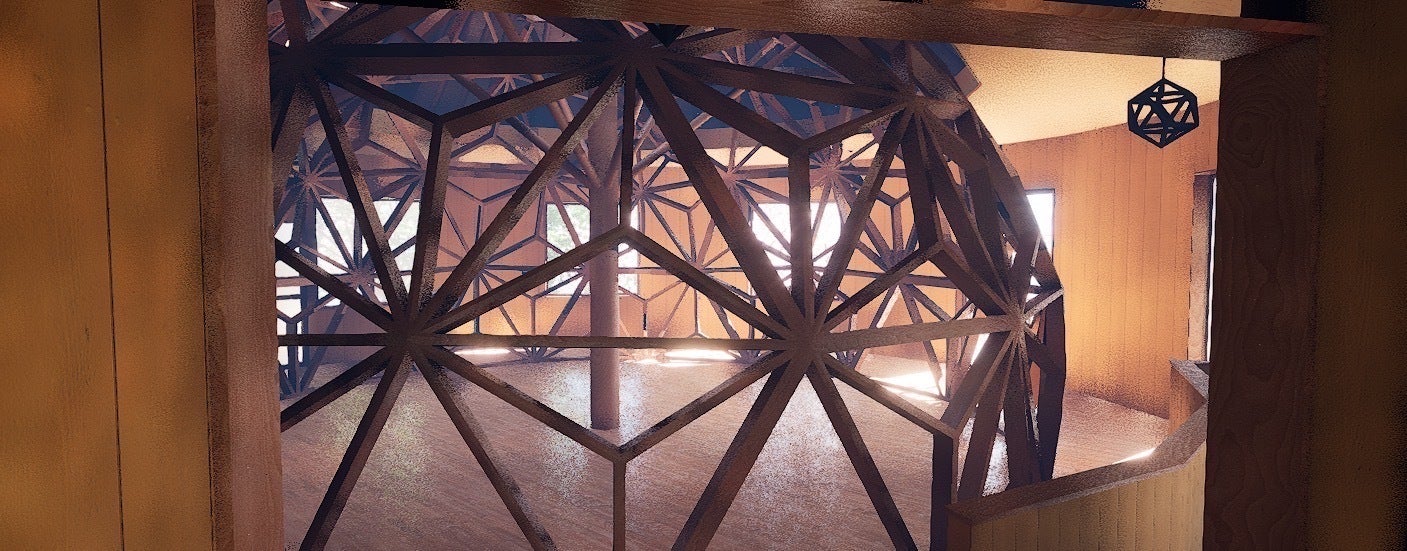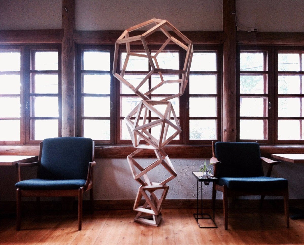 ユークリッド幾何学の観点では、直感的に納得できる空間の在り方が幾何学であるとされており、不思議な納得感になぜか落ち着く空間になっています。