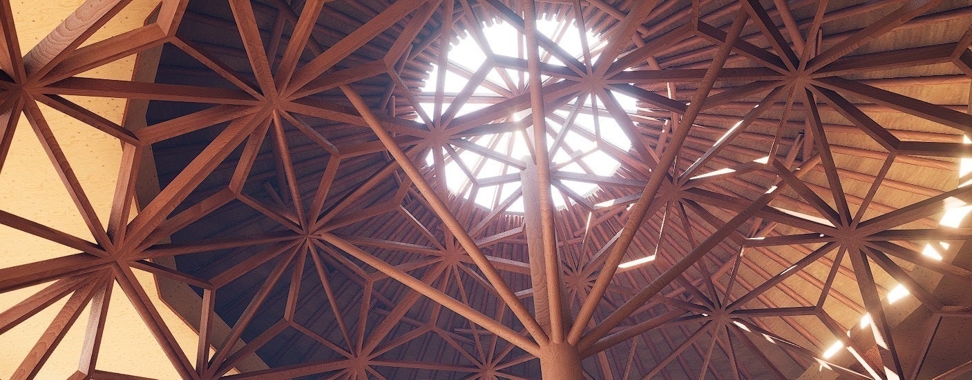 天竺別棟ホールに設置予定の麻の葉文様ドーム。