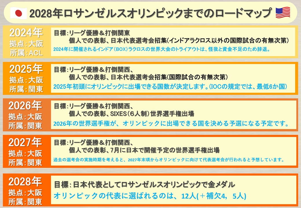 そういった理由から2025年度からロサンゼルスオリンピックが開催される2028年度までは、拠点は大阪のまま(今の仕事であるラクロス指導が大阪で行うため)関東のチームに所属し、チームの練習がある土日のみ関東に行こうと考えています。