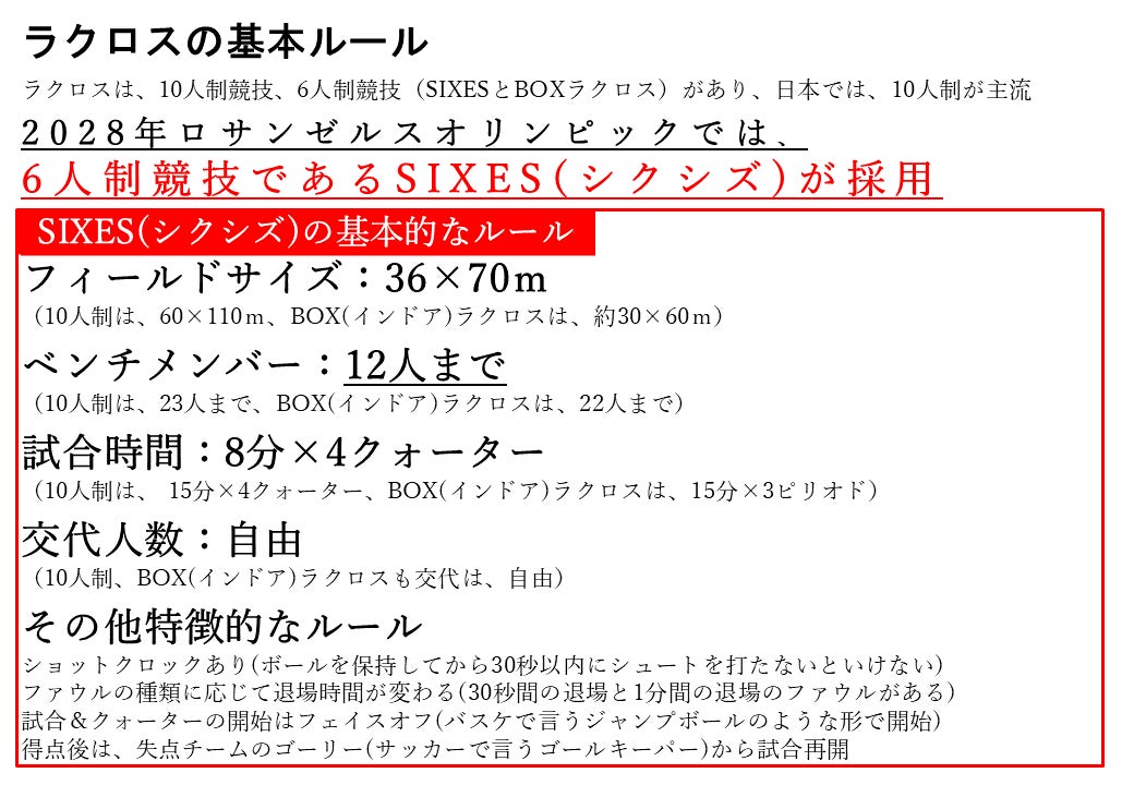 オリンピックの開催国アメリカでは、かなりの人気スポーツであるラクロスは、日本では、まだまだマイナースポーツかもしれませんが、2022年に行われたTHE WORLD GAMES2022というSIXES(6人制ラクロス)の世界大会で、ラクロス日本代表は、日本史上初のメダル獲得なる銅メダルを獲得し、オリンピックでのメダル獲得も期待されています。