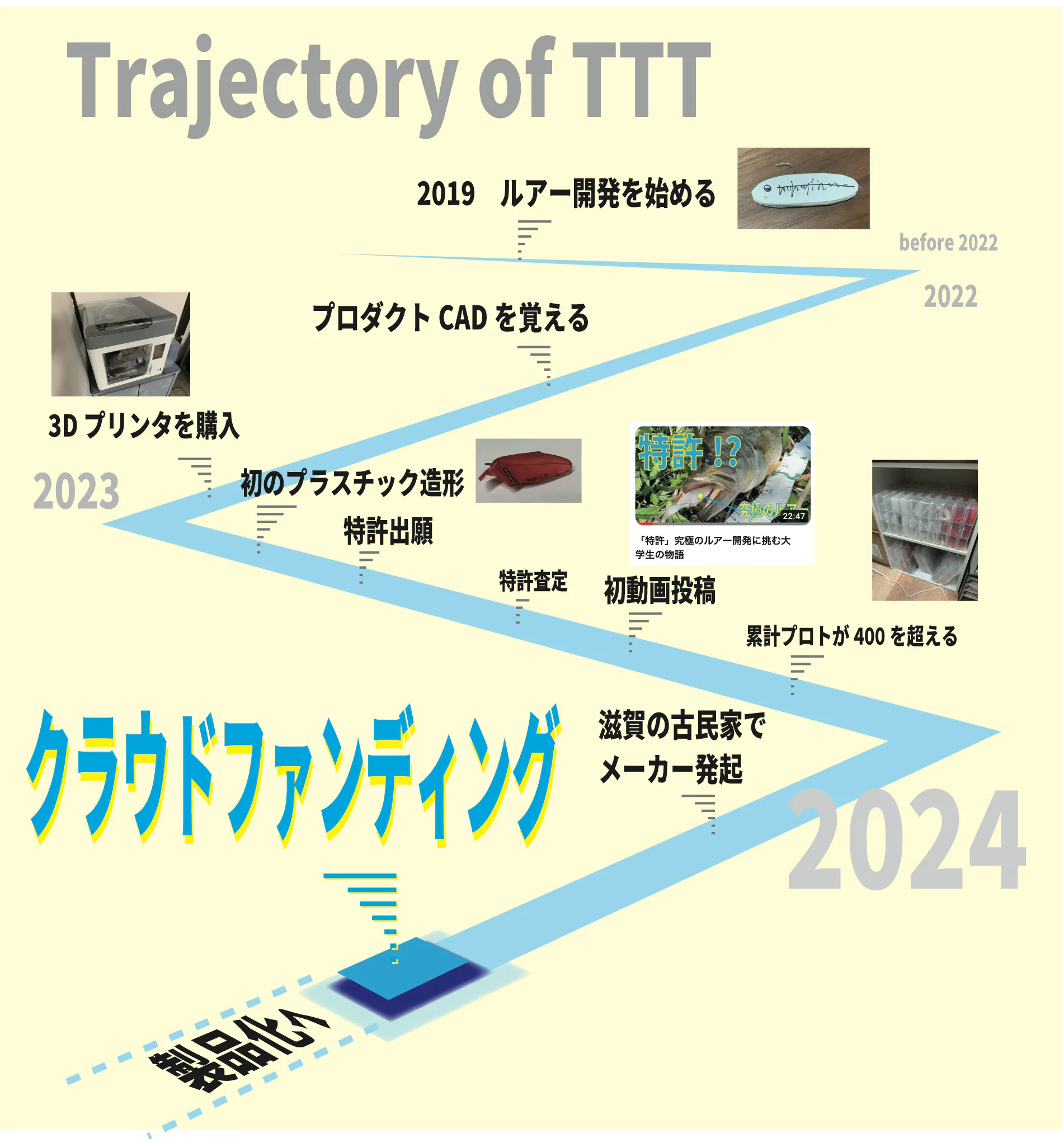 ルアーの製品化によって多くの方にTTTのルアーを使っていただけることに加え、製品によって利益を得ることができれば、よりいっそう製品の開発、改良を行なっていくことができます。