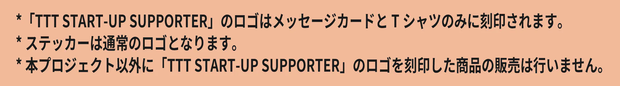 ・TTTの立ち上げ、製品化にご協力いただいた証として(TTT STAR-UP SUPPORTER)のロゴをメッセージカードの表面に刻印させていただきます。
