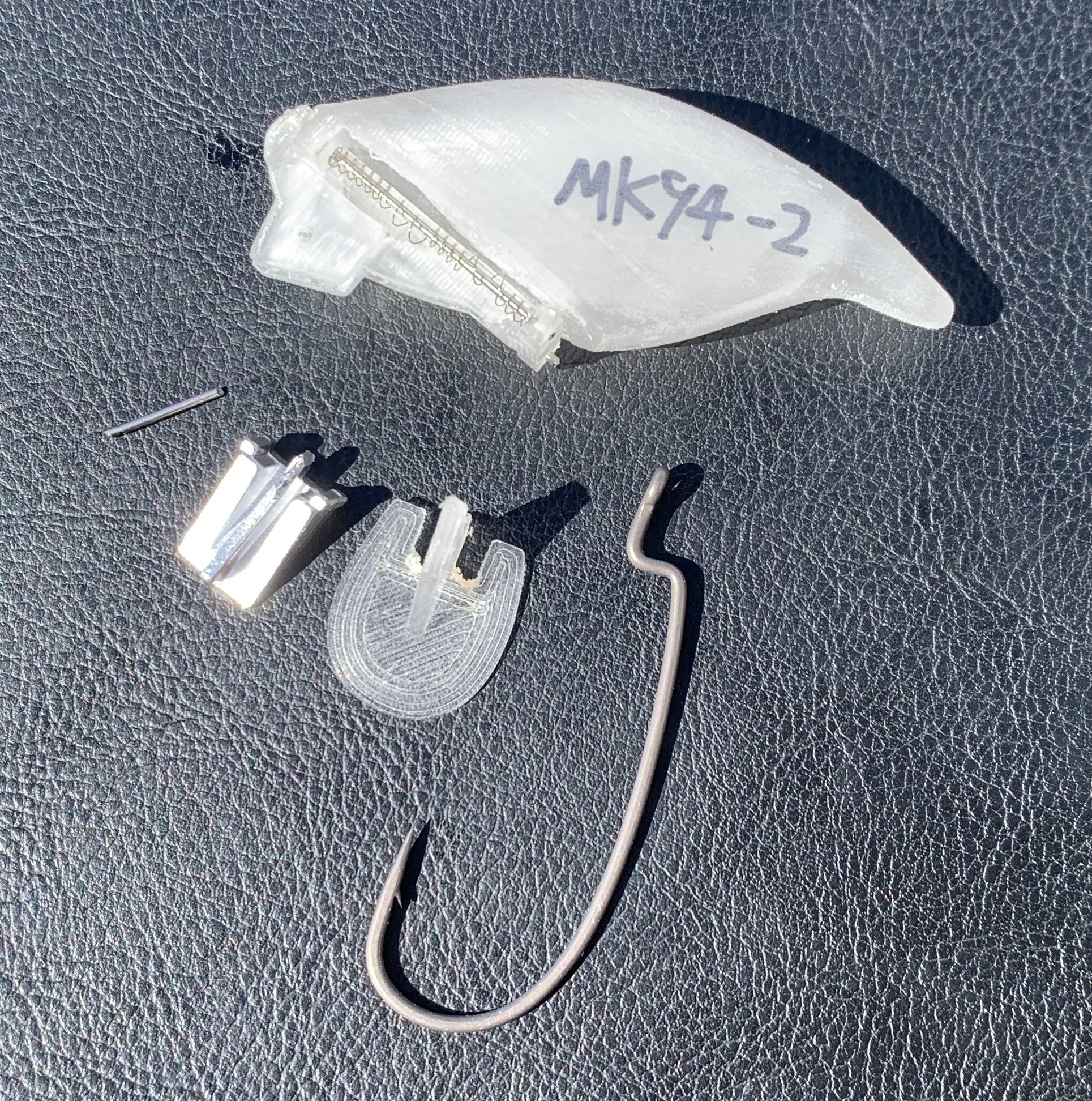 開発を続け、様々な可能性を試す中で一つの機構に辿りつきました。ボディを前後に分割し、フックに対して斜めにボディをスライドさせる。フックがボディから飛び出るのではなく、ボディがフックから逃げる。答えは既にオフセットフックとソフトルアーの中にありました。