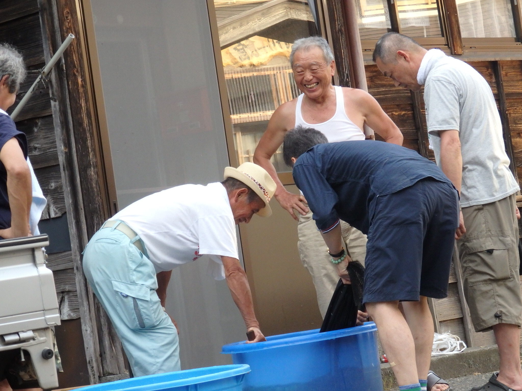 近所のおじぃちゃんと話しながら