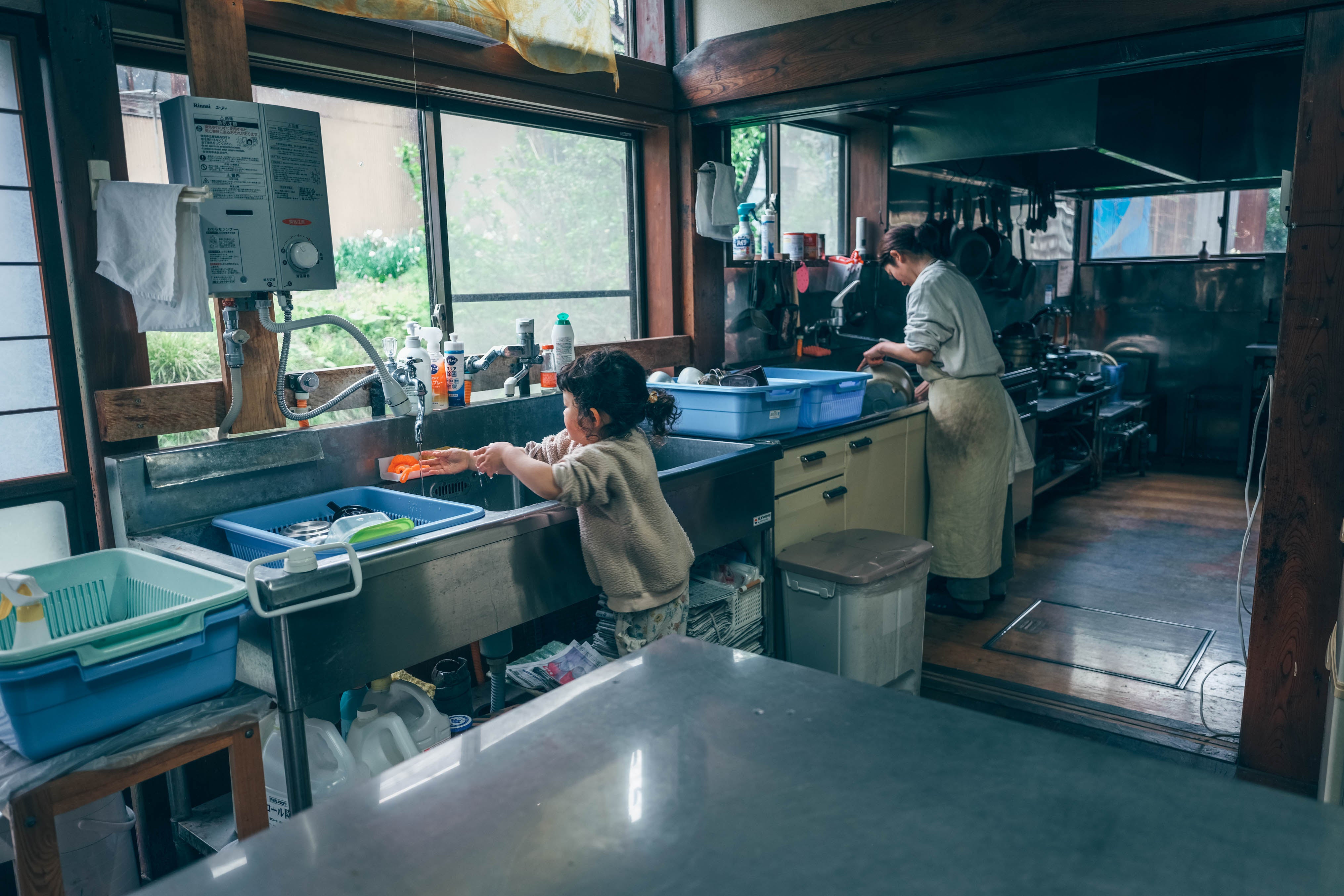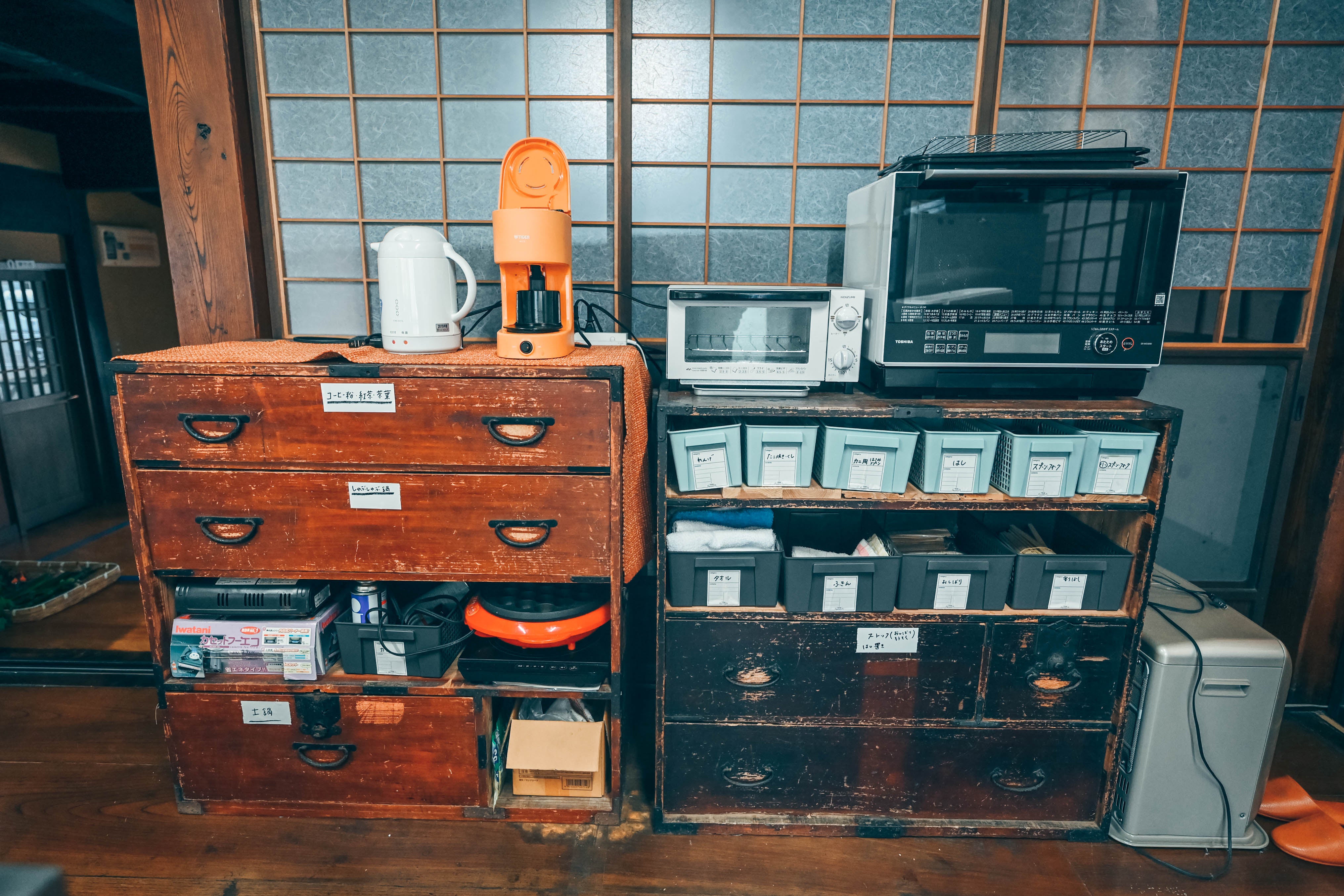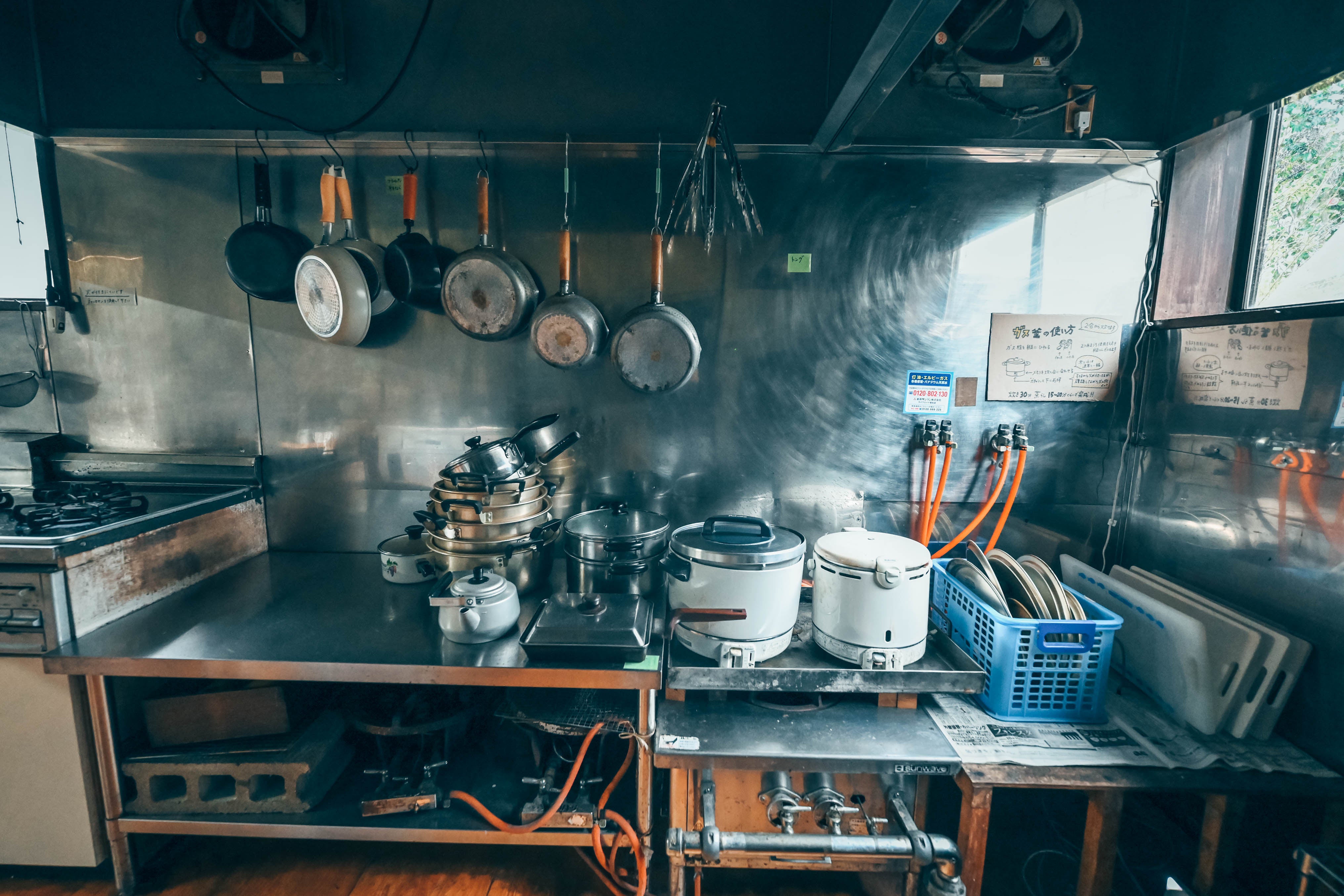 ⇒もともと食事も出していた宿なので広いキッチンと各種備品やお皿など揃っています。自由にご利用ください。