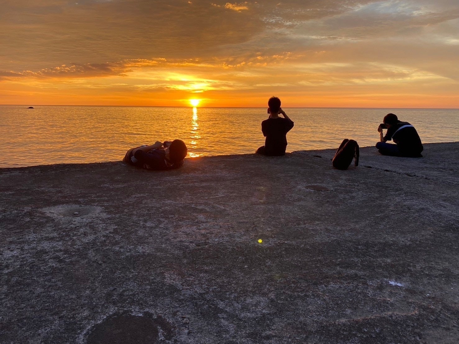 宿の前のバス停に座って