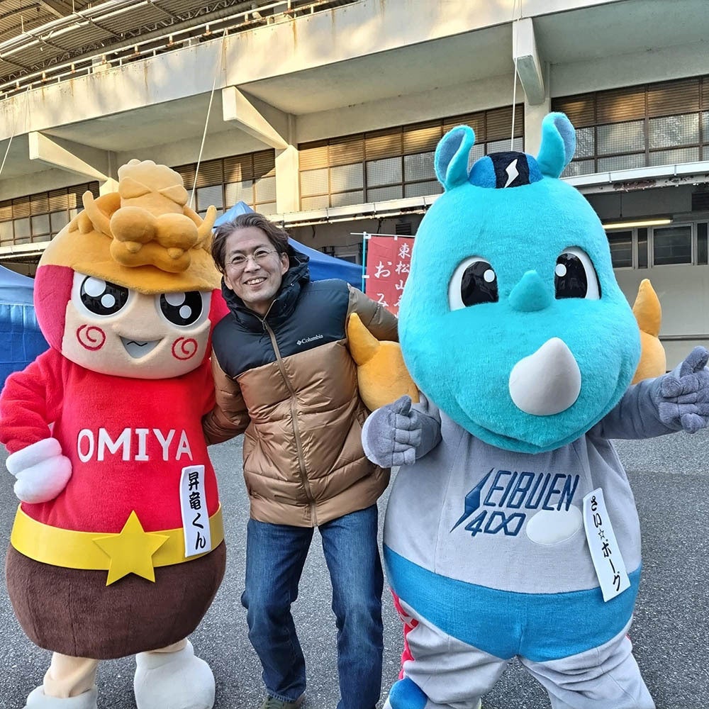 新年の大宮競輪イベントに出店した際にキャラクターさんたちと