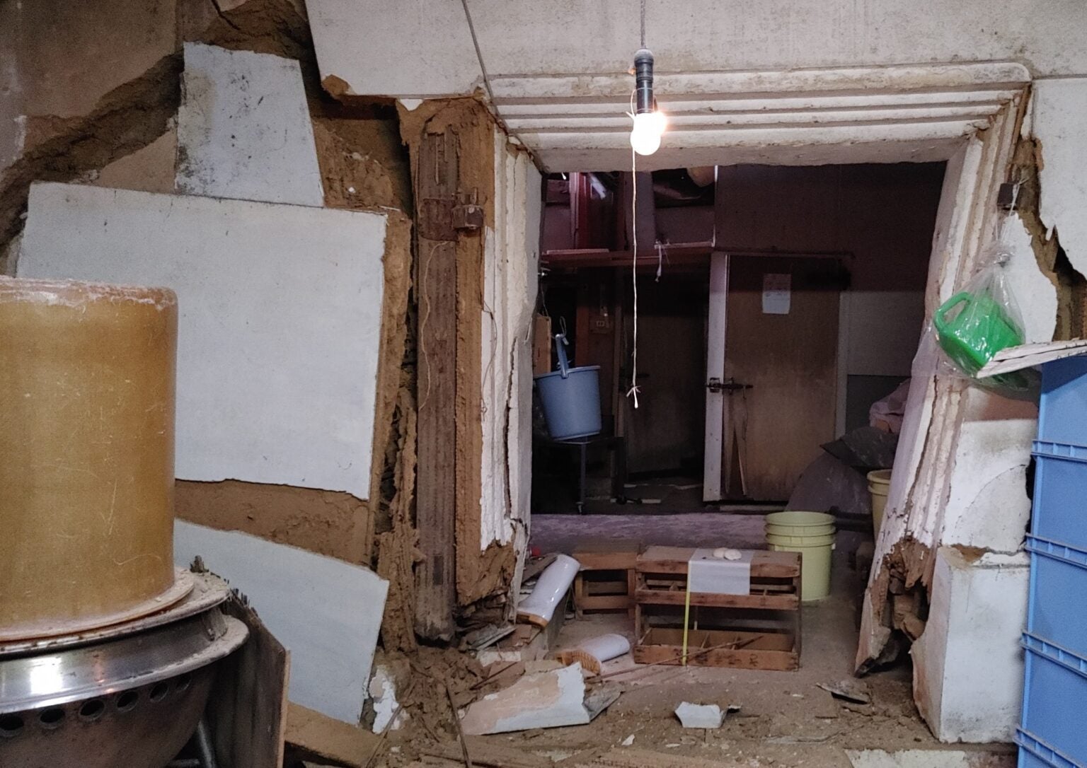 地震の被害を受け、壁が剥がれ落ち、床の至る所に亀裂が入ってしまいました。現在、建物自体にも倒壊の恐れがあるため作業はできない状況です。醤油・味噌づくりを再開するためにも優先的に改修したいです。