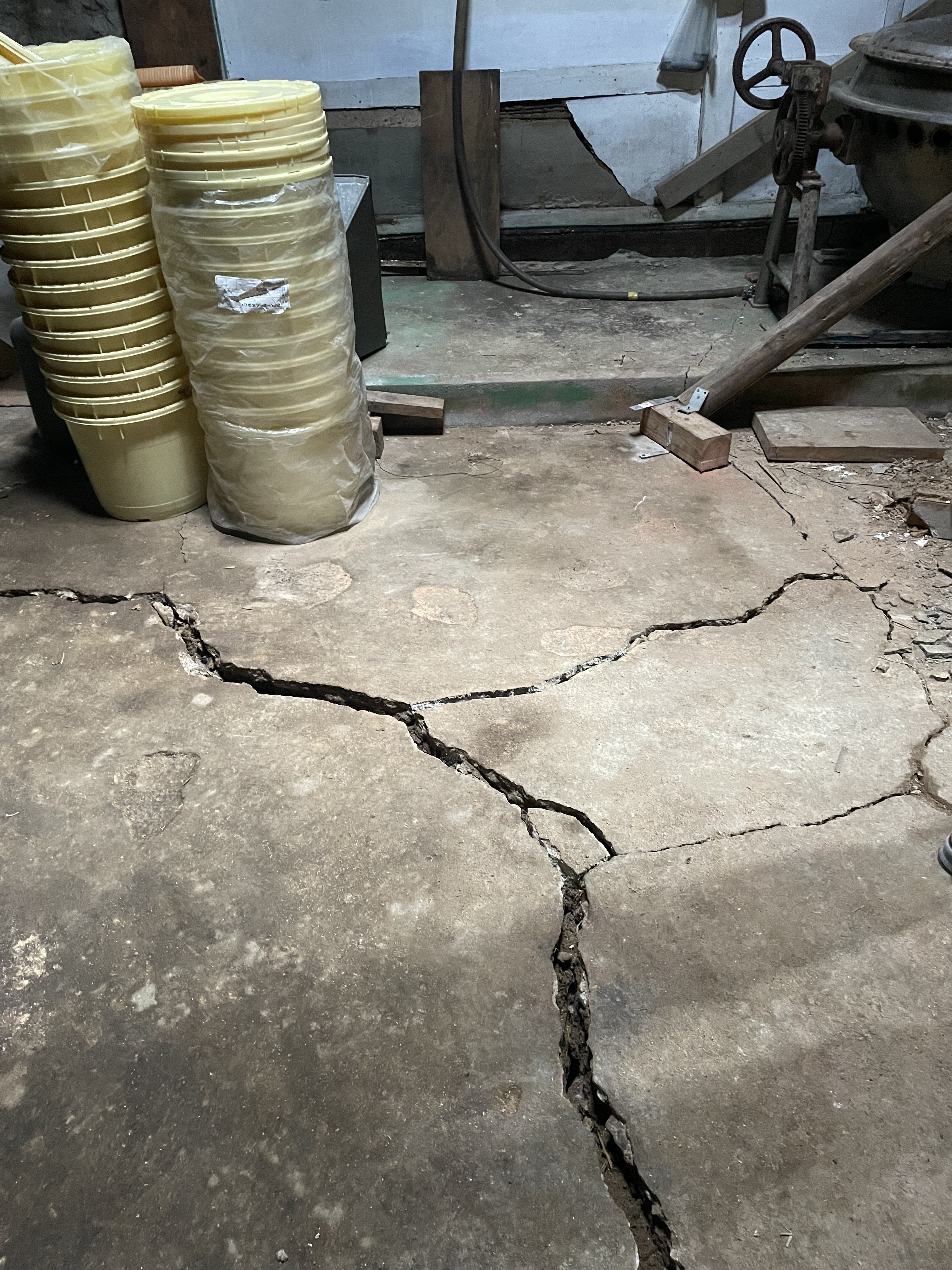 大きな亀裂が床のあちこちに入ってしまいました