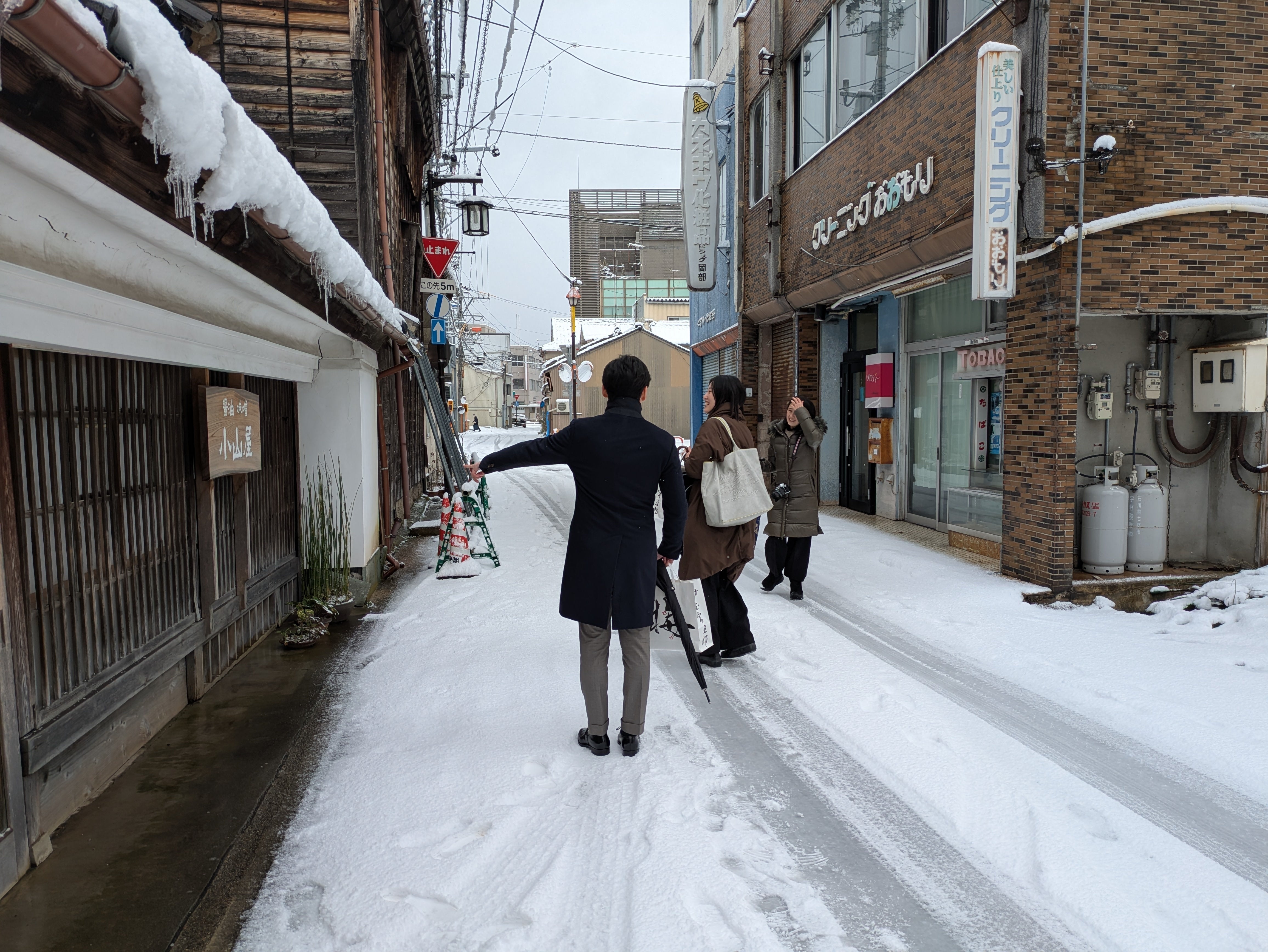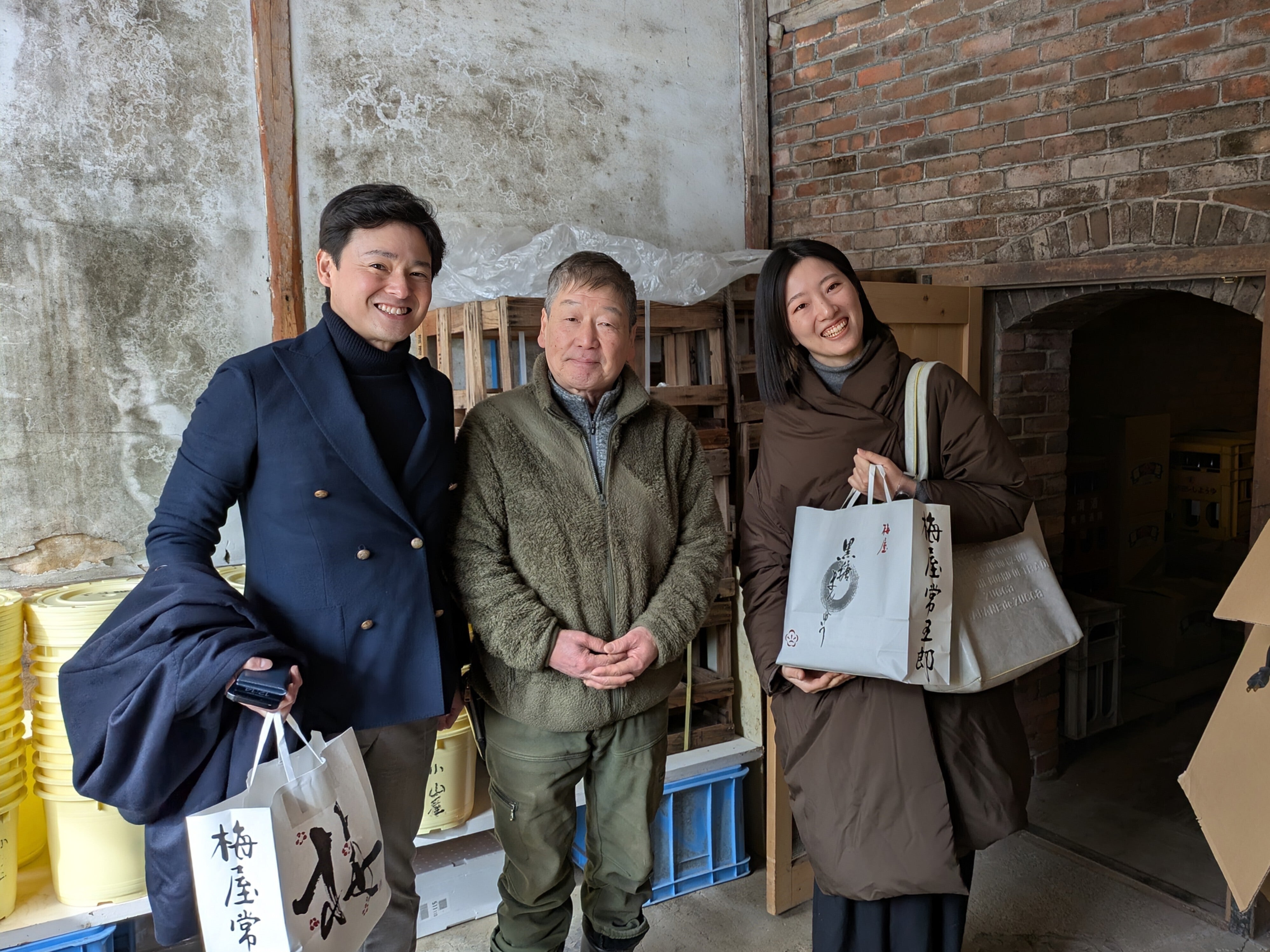 応援メッセージを頂いた久原本家の常務河邉太郎さんがお越しくださいました。2月の大雪警報の中です。