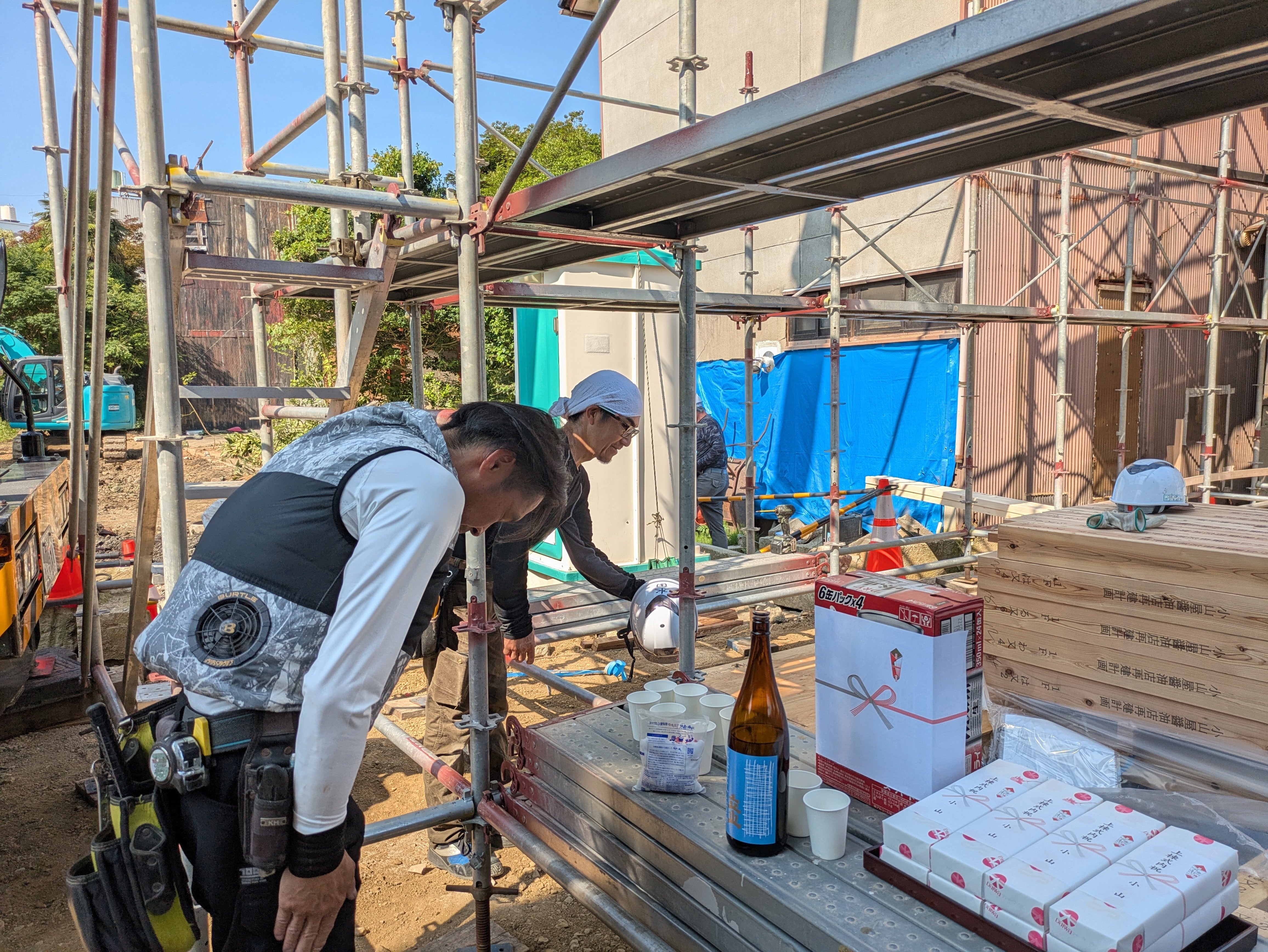 11日に棟上げ式とお知らせしましたが、お寺さんの解体の進み状況を考えこの日に決まりました。