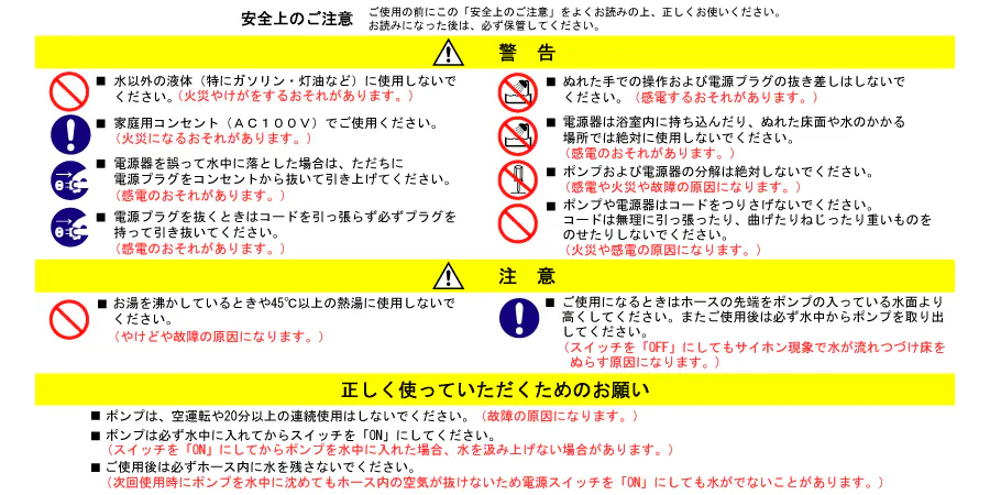 ◆揚水量:約20L/分(揚程0m時)、約16L/分(揚程1m時)、ホース3mの時