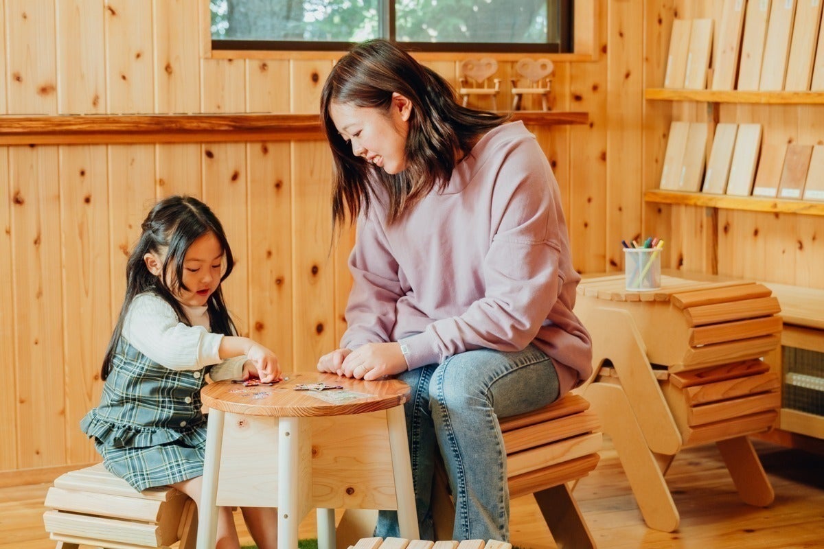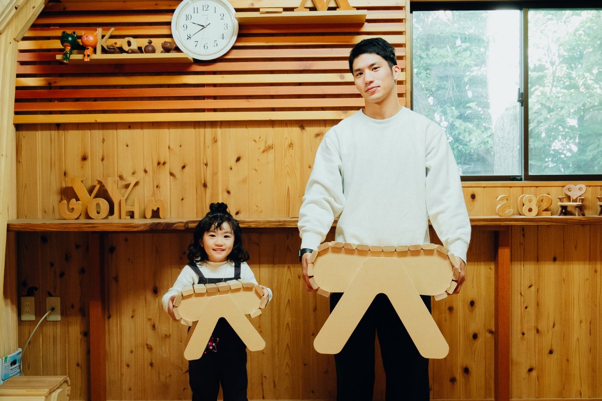 釘やビスを一切使わずゴムハンマーと木工用ボンドで組み立てるため、小さなお子さんでも安心して組み立てられる椅子づくりキットです。