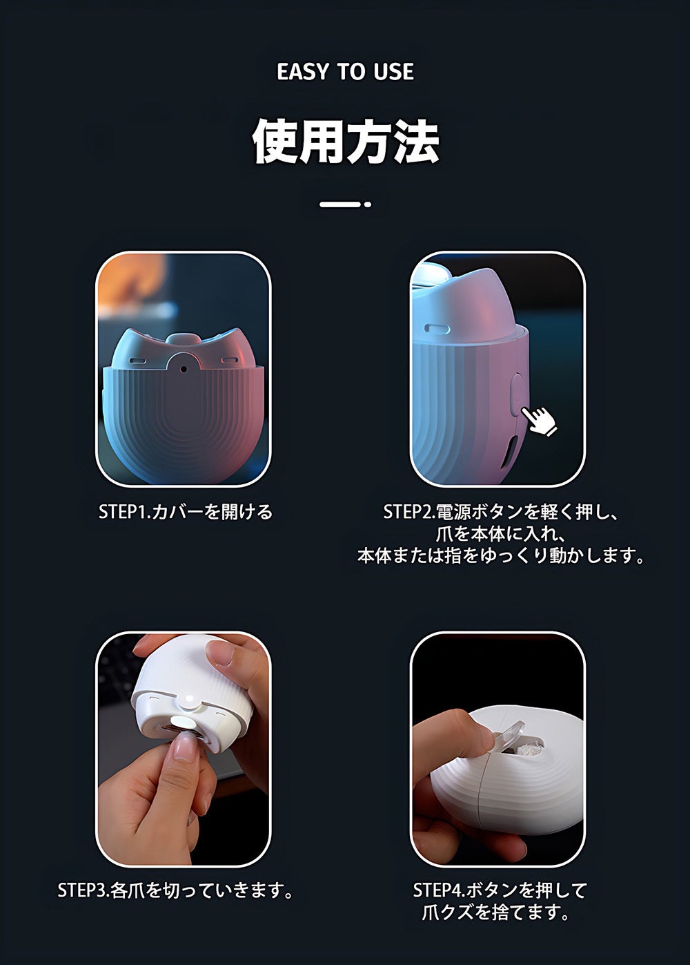 NC01は、数秒で伸びた爪を削って短くするだけでなく、削った面をツルツルに仕上げて、思い通りに形を整えることができます。