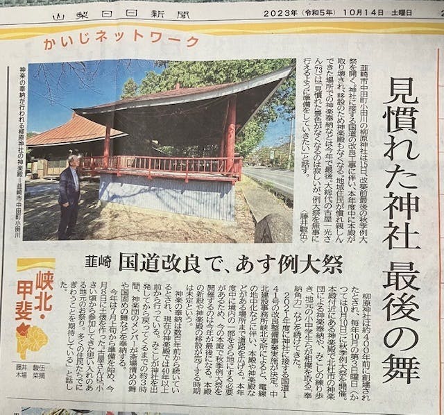 このたび、国道の拡幅工事に伴い、柳原神社の社殿を取り壊しましたが、祭事を継続する費用が足りません!皆様のご支援をお願いいたします!