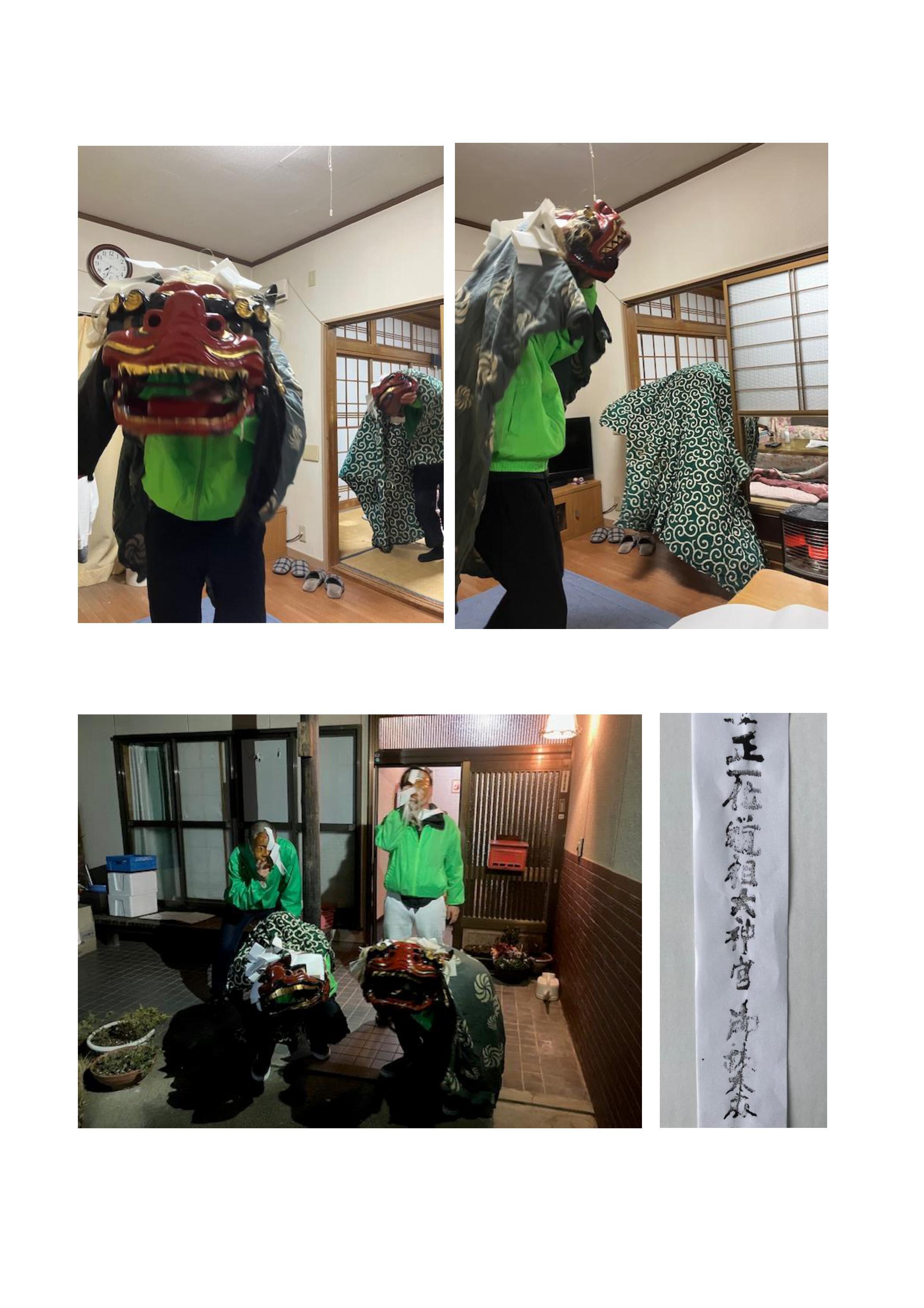 の掛け声とともに、お祭り青年が被る獅子が勢いよく家の中に駆け込んできます。