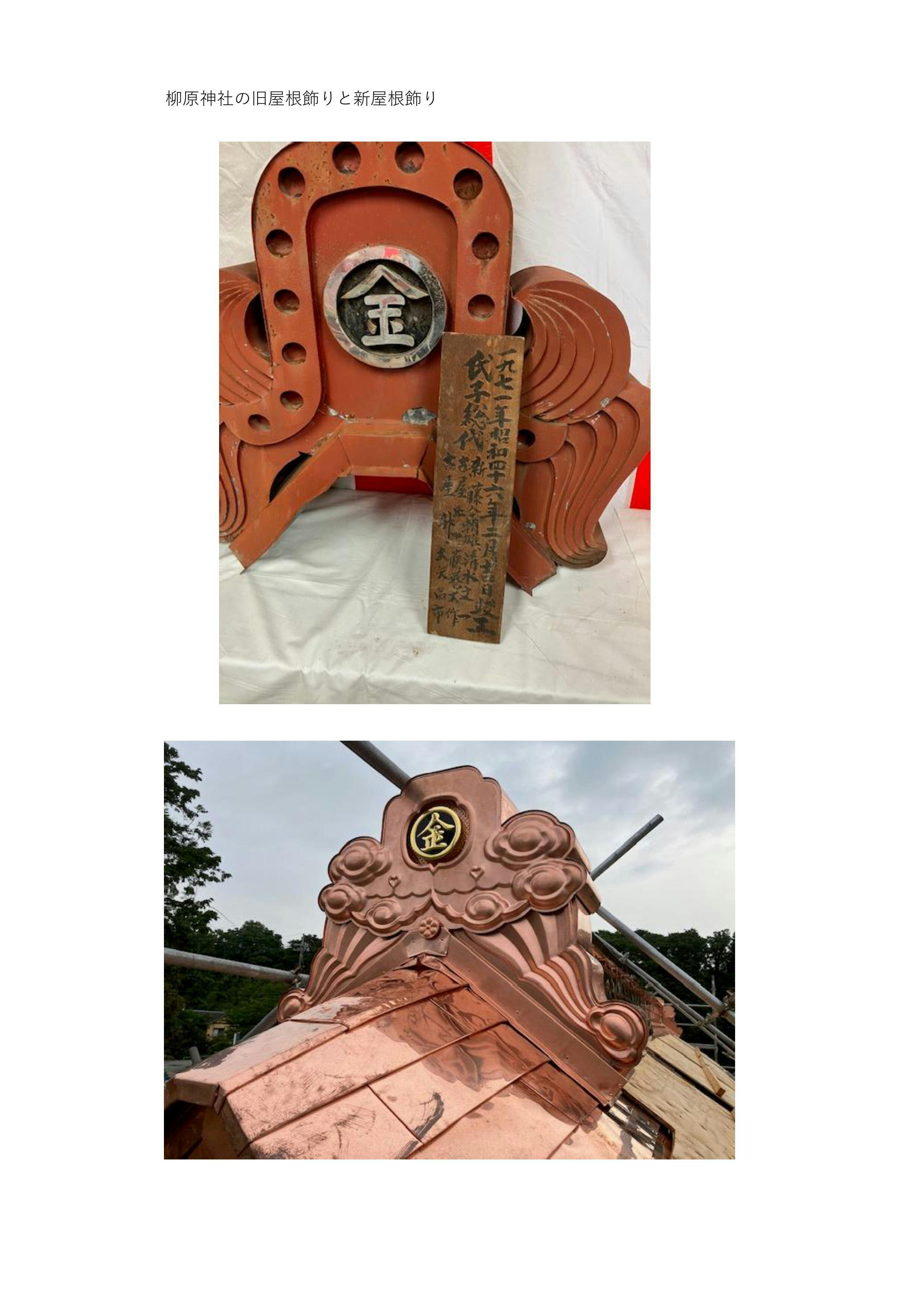旧柳原神社屋根の鬼飾りは、地元のトタン職人が作りました。