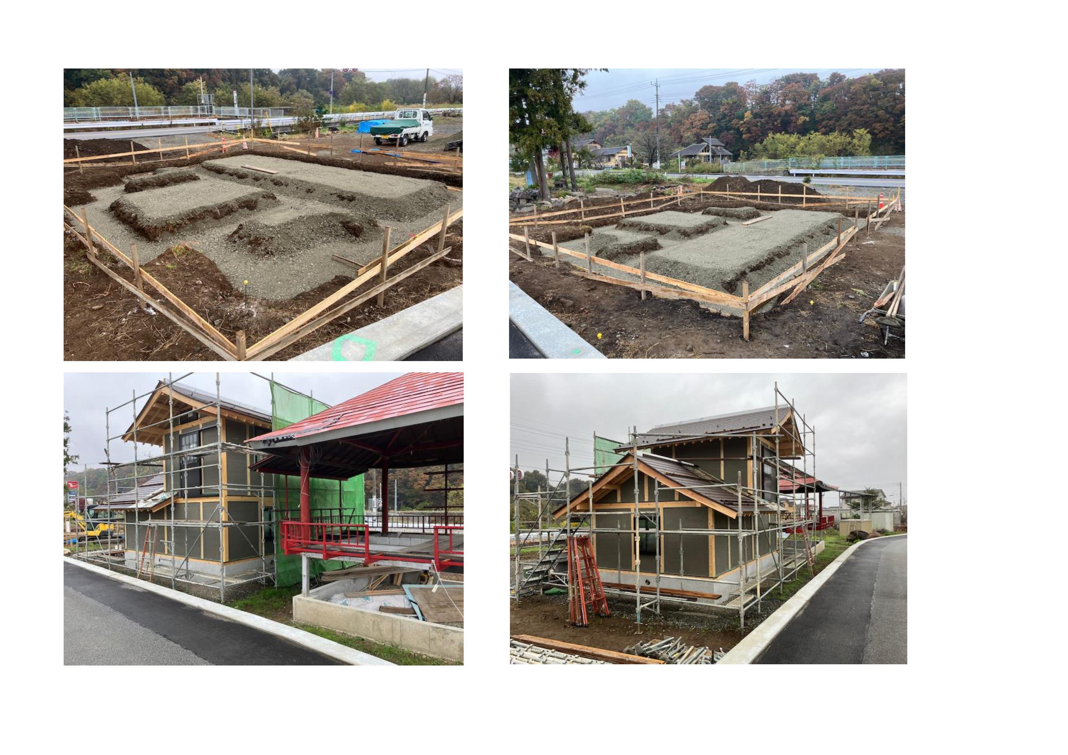 神社本殿は、境内の敷地が狭くなったため以前の本殿よりやや小さくなります。神楽殿横に建設中の神楽師控室、神輿格納庫もだいぶ仕上がってきました。事故なく、順調に建築工事が進みますように。