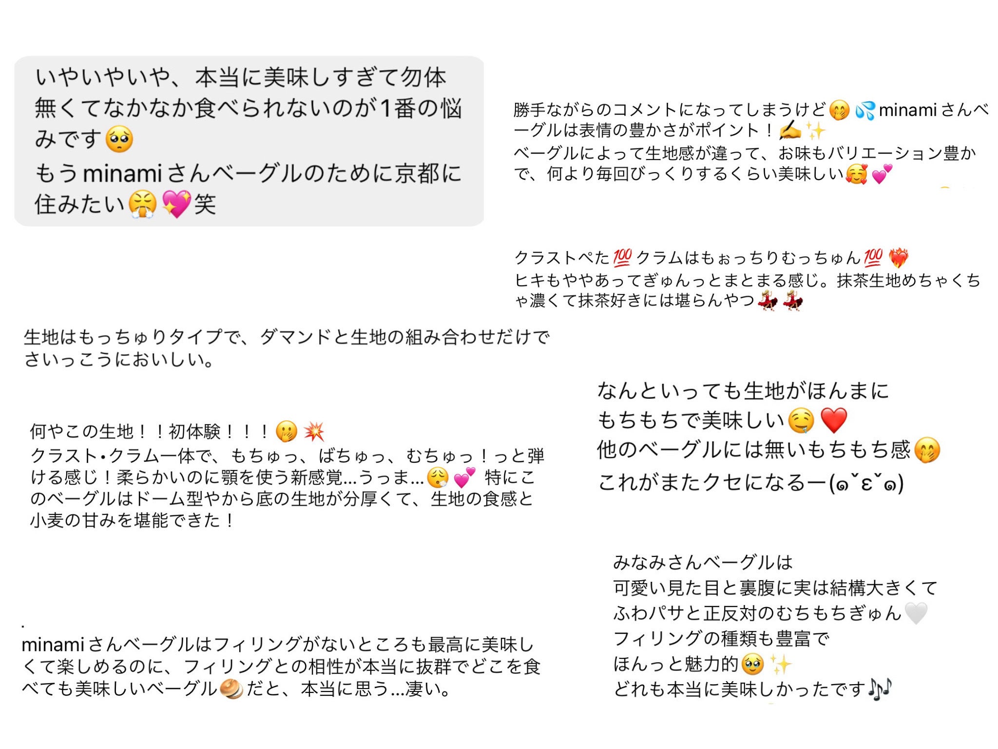 お店によって味や食感が全然違うことにおもしろさを感じ、また丸くてかわいいビジュアルにハートを射抜かれ…気づいたらベーグルの沼にハマっていました♡